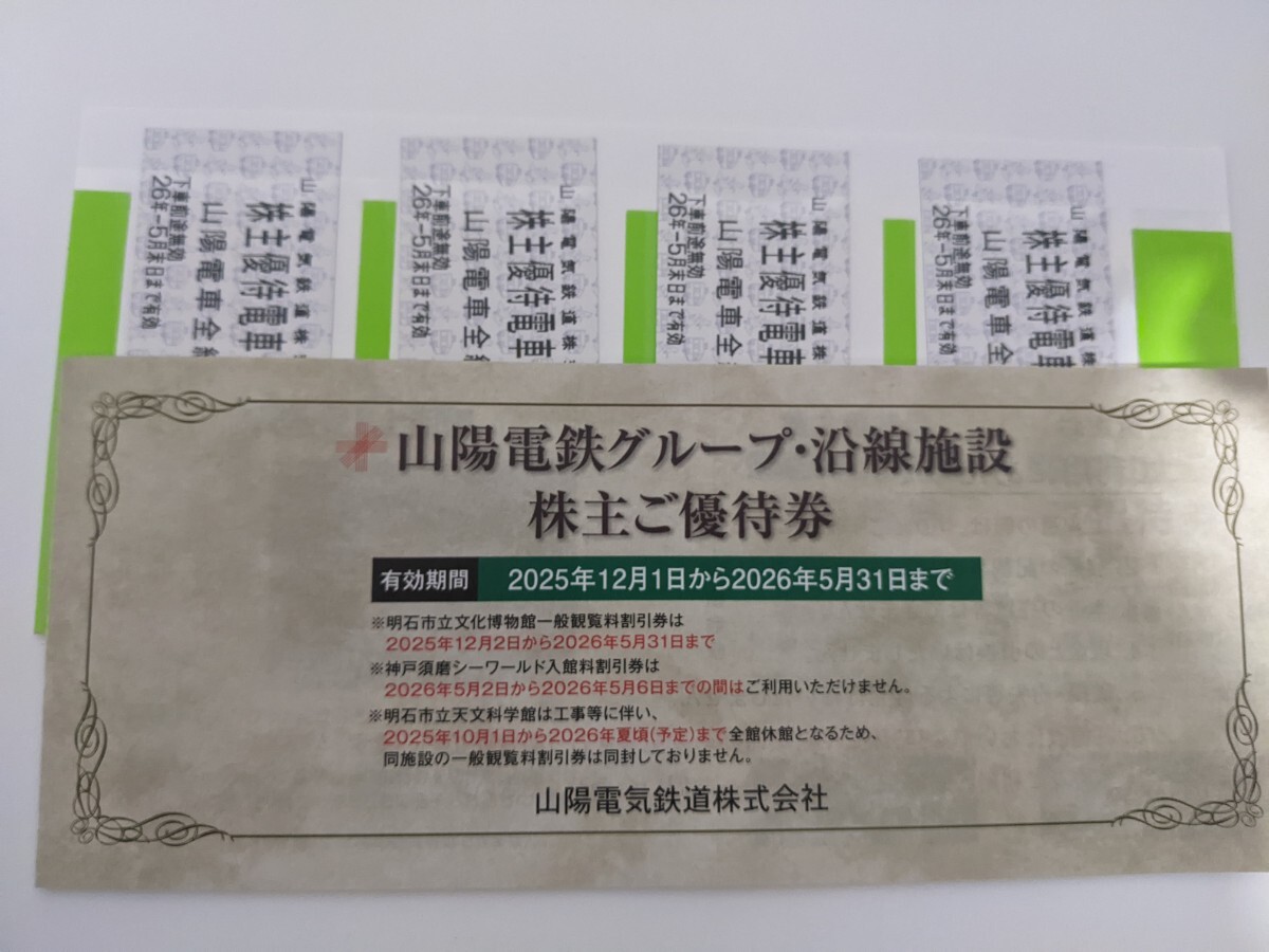 山陽電鉄の株主優待乗車券4枚と優待冊子1冊です。