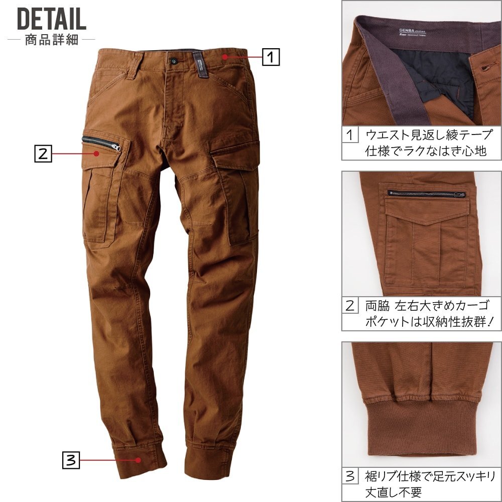 ジーベック 秋冬 リブ付き カーゴパンツ 丈夫で肉厚なストレッチ生地 現場服 2176 色:クロ サイズ:5L ★ 対象2点 送料無料 ★
