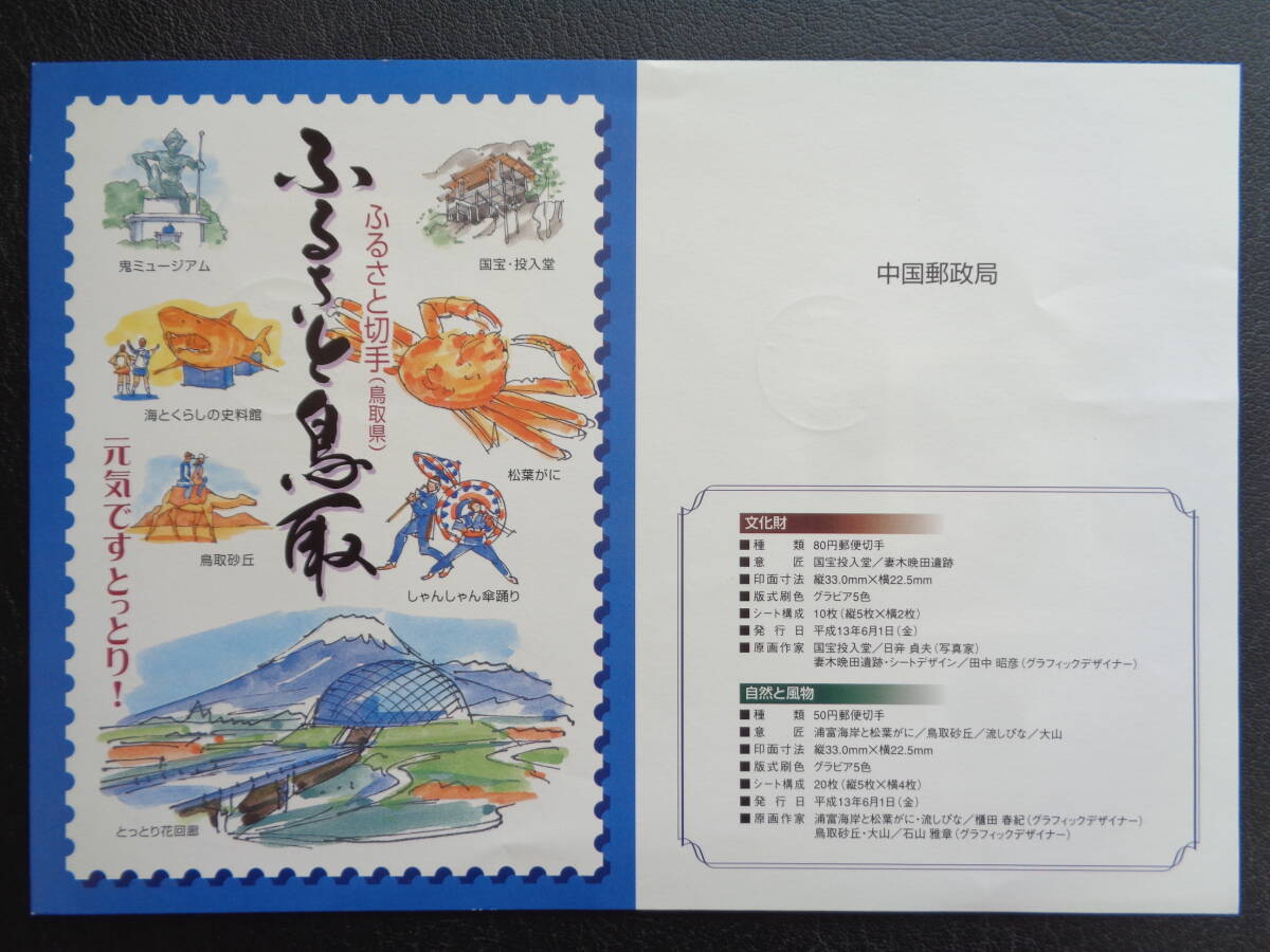 初日印     切手説明書    2001年    ふるさと切手   ふるさと鳥取   鳥取県