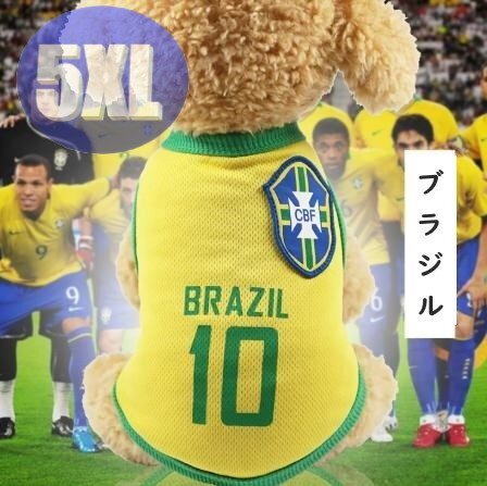 ドッグウェア 春夏 ブラジル 5XLサイズ サッカー 代表 ユニフォーム 犬服 大型犬 袖なし 通気性 柔らか 洋服 可愛い