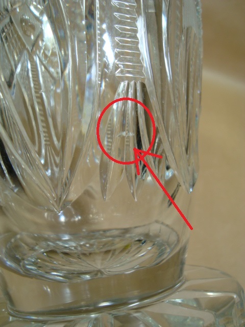 画像赤丸矢印参照でガラス内部に元々の不純物?のヨゴレキズがあります。