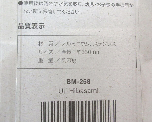 | 内 容 | ■ベルモント U.L. 火鋏(BM-258) ■サイズ:全長330mm ■重量:約70g ■日本製 細身でスタイリッシュなデザインで ウルトラライトなアルミニウム製火バサミ。 アルミニウムをコの字に成形しているため 強度があり大きな薪にも対応。 ◆総額 7040円相当 |