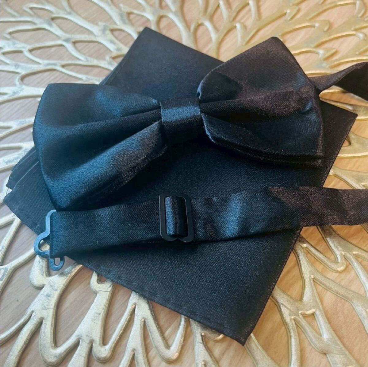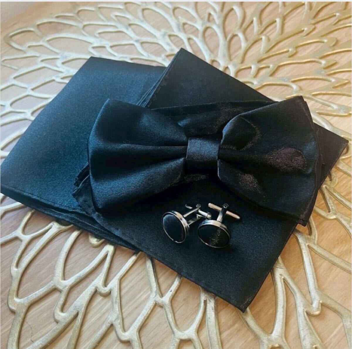 蝶ネクタイ 冠婚葬祭 結婚式 カフスボタン ブラック ポケットチーフ おしゃれ メンズ 男性 10代20代 30代 40代 4点セット 挙式 成人式 披露宴 海外製品 ファッション ネクタイ フォーマル 上品 ドレスアップ 初心者 ブラック 披露宴 無地