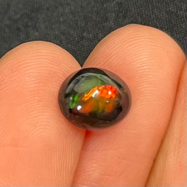 | ※別途5500円で鑑別書(ソーティング)発行できます。 非常に美しい色でオパール独特の輝きを放っています。 特に、ブラックオパールは10大貴石の一つとなっている程、貴重で高貴な宝石として扱われています。 ブラックオパールは、行き詰まったり、改善されなかったりする悪い現状を好転させる力を持ったパワーストーンです。特に、恋愛関係、夫婦関係で倦怠期から脱出したい時に強い意味と効果を持ったパワーストーンです。 また、物事や事象を好転させる力は肉体にも働き、新陳代謝を活性化させます。また、精神面の活性化にも好影響を及ぼします。オパールは心と肌に潤いをもたらしてくれます。 ブラックオパール:約10.8×8.8×4.9mm | ||