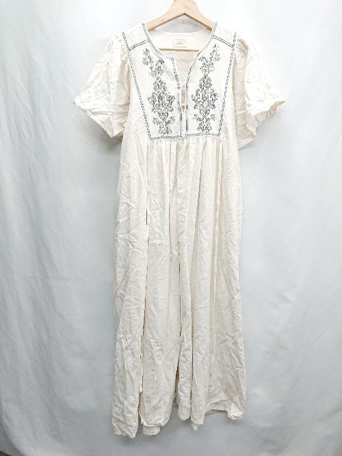 ◇ ⊂ Unitage ユニテージ gfghf スパンコール 半袖 ロング ワンピース サイズF ベージュ レディース E