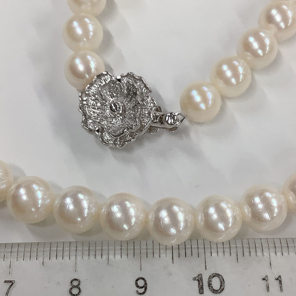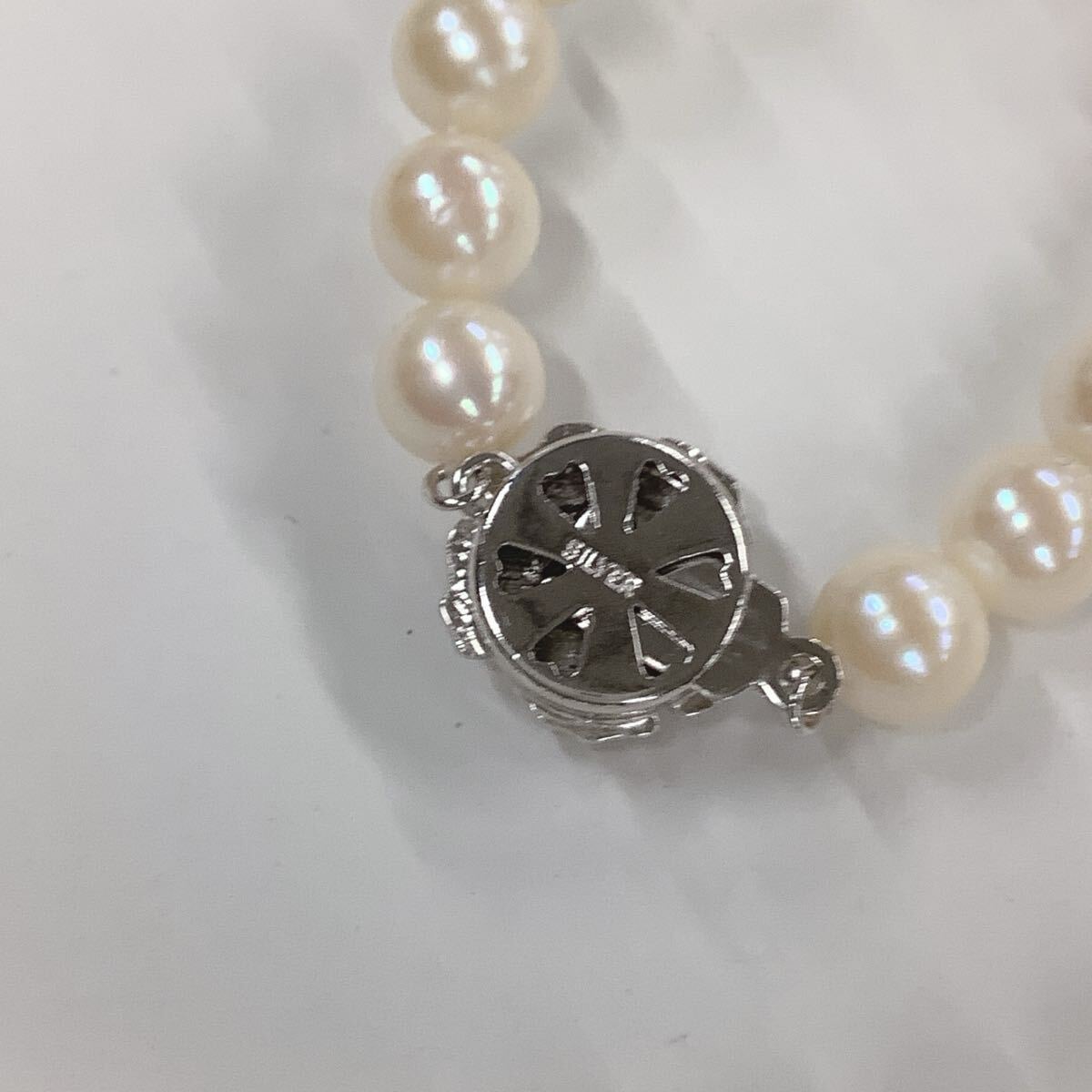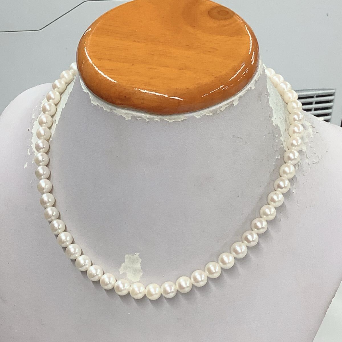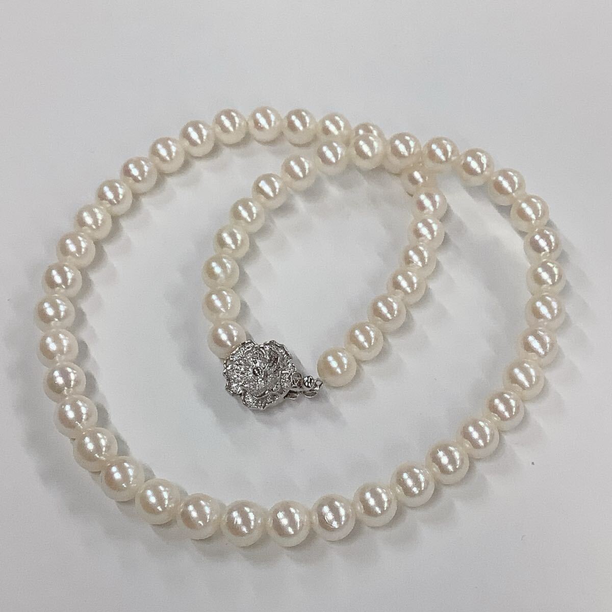 ●ハ2142H◎艷やか本真珠 パールネックレス 7-7.3ミリ球前後 全長約42センチ 留具SILVER刻印あり きれいなテリ◎送料込み◎