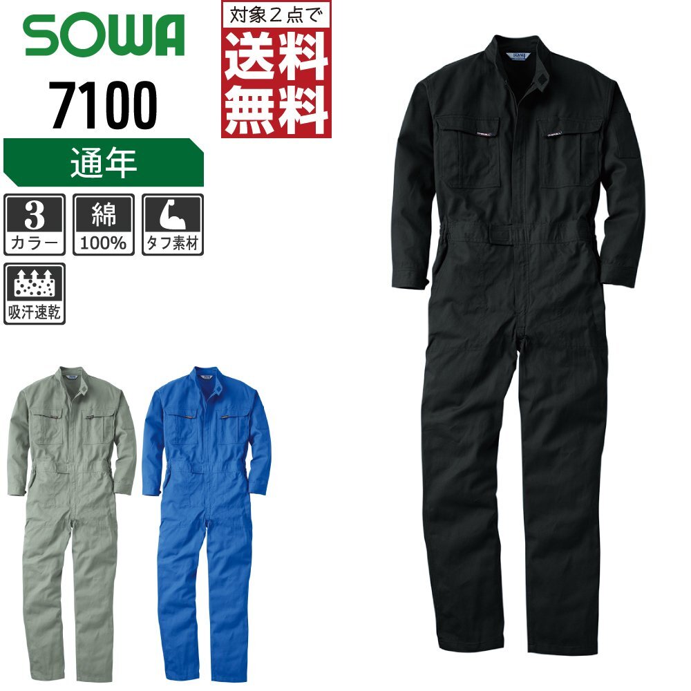 SOWA 通年 長袖 つなぎ 7100 肉厚綿100% タフ素材 色:ブルー サイズ:M ★ 対象2点 送料無料 ★