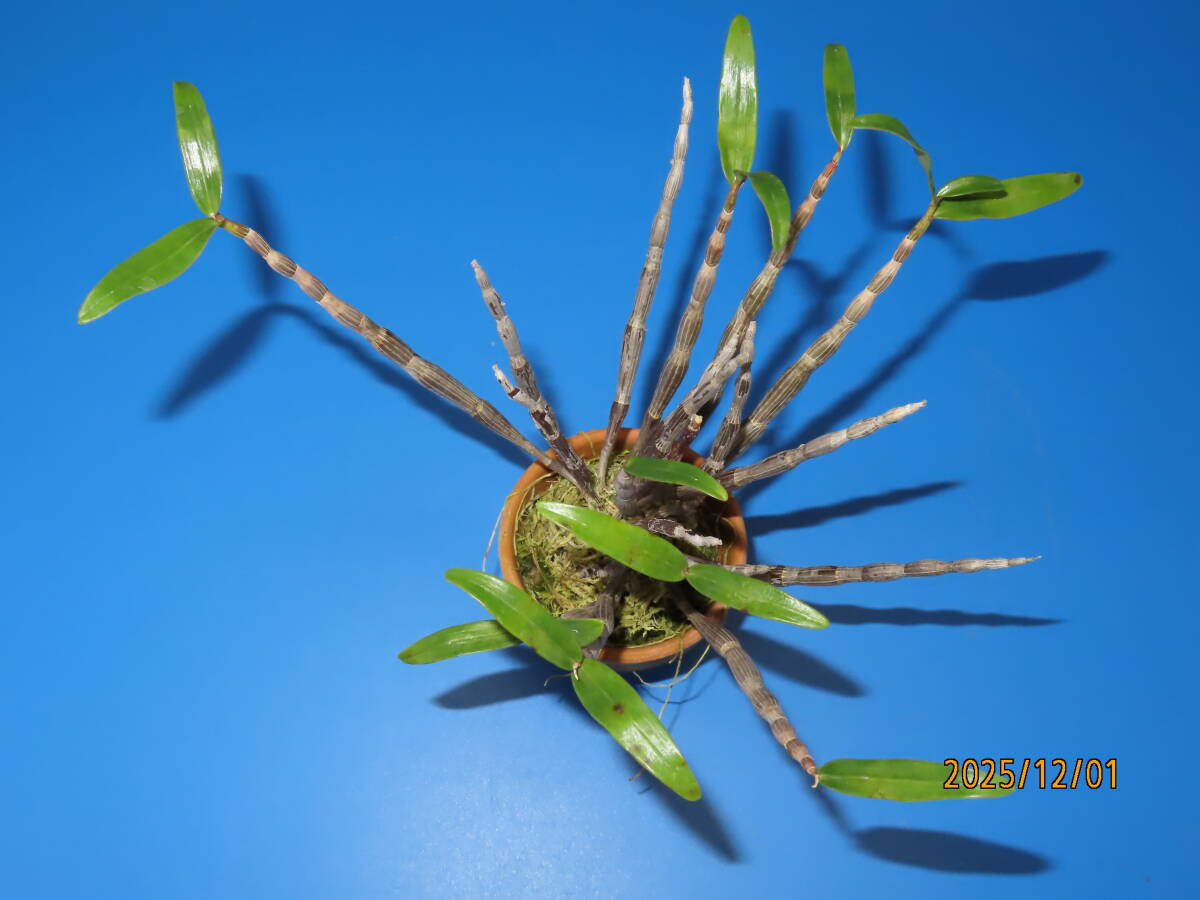 セッコク・長生蘭は最低気温が10℃近くになると、昨年のバルブ(矢)の葉及び下葉を落葉させる時期になります。