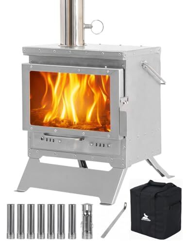 薪ストーブ 【二次燃焼】焚火 耐熱ガラス窓 ステンレス製 組立簡単 スパークアレスター 収納バッグ付p