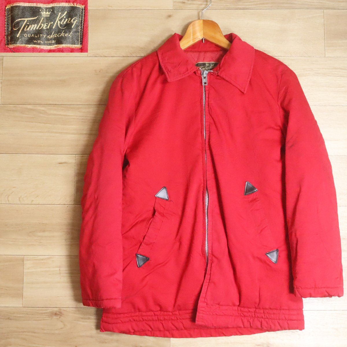 N11R/R5.12-5 60s~70s ヴィンテージ Timber King 中綿ジャケット ハーフコート EMARジッパー ブルゾン ジャンパー レッド