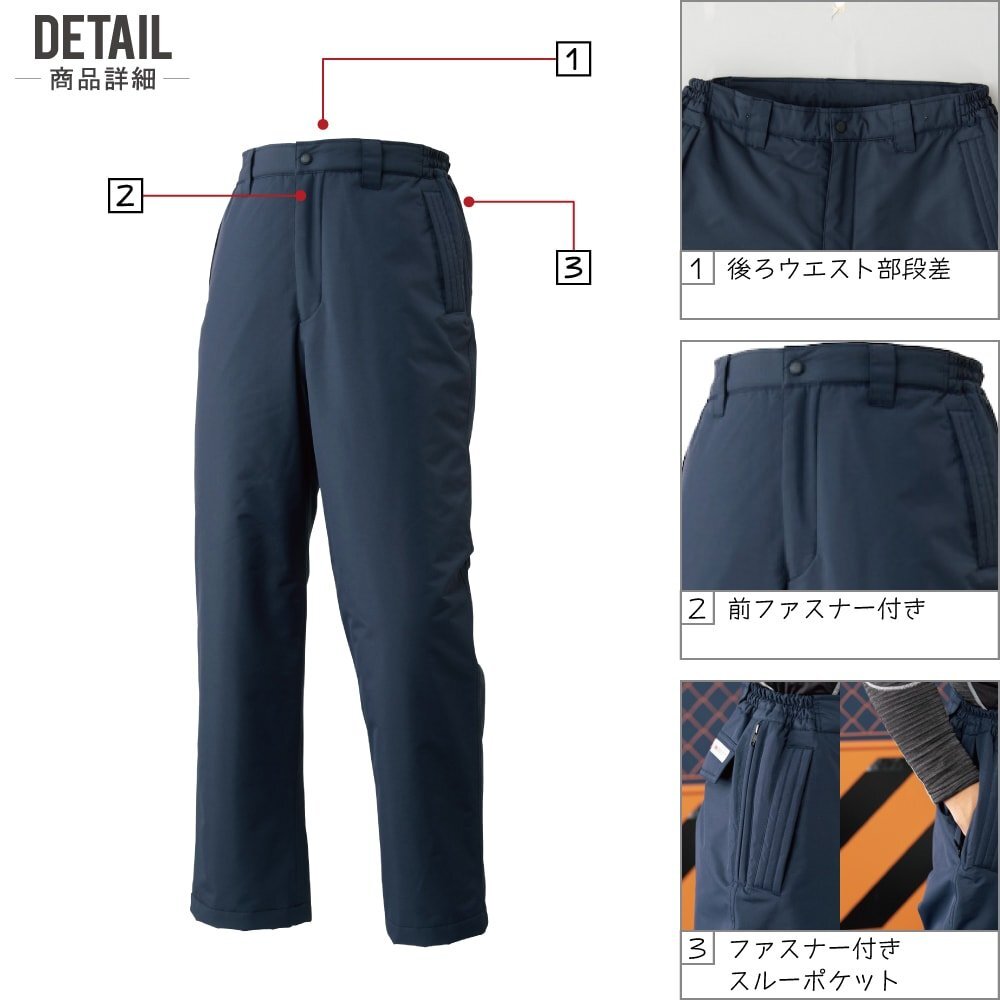 特長:中綿(シンサレート入り)/前ファスナー付き/ファスナー付スルーポケット