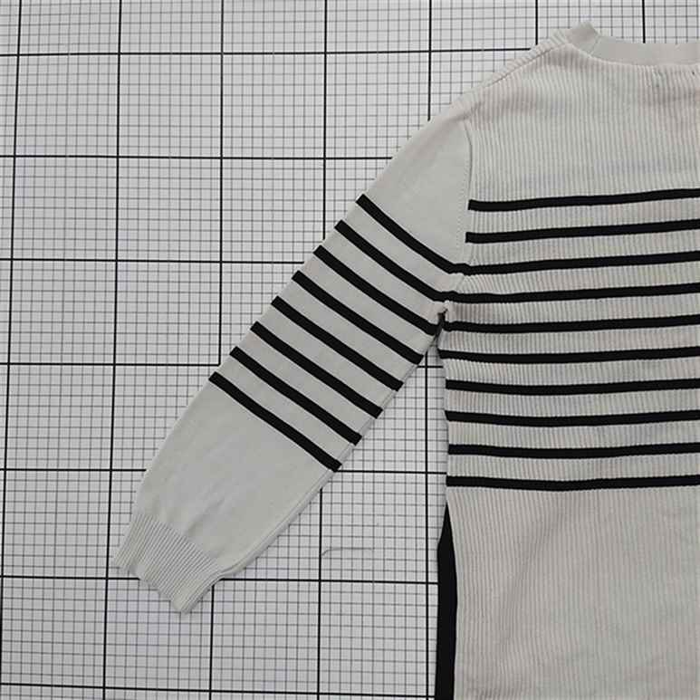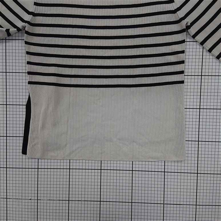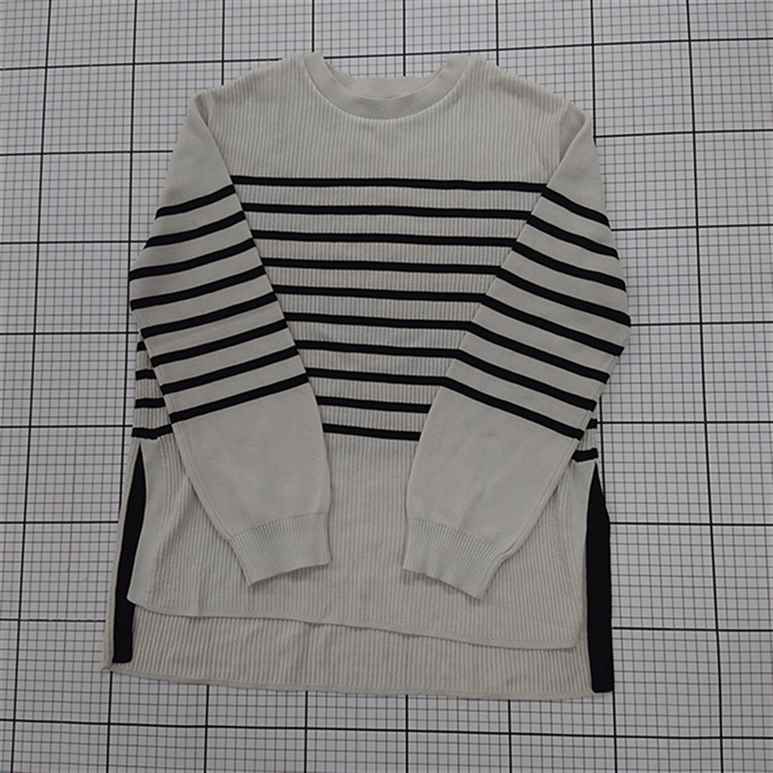◇ ⊇ インディヴィ INDIVI ボーダーリブニットプルオーバー レディース 日本製 オフホワイト系 E
