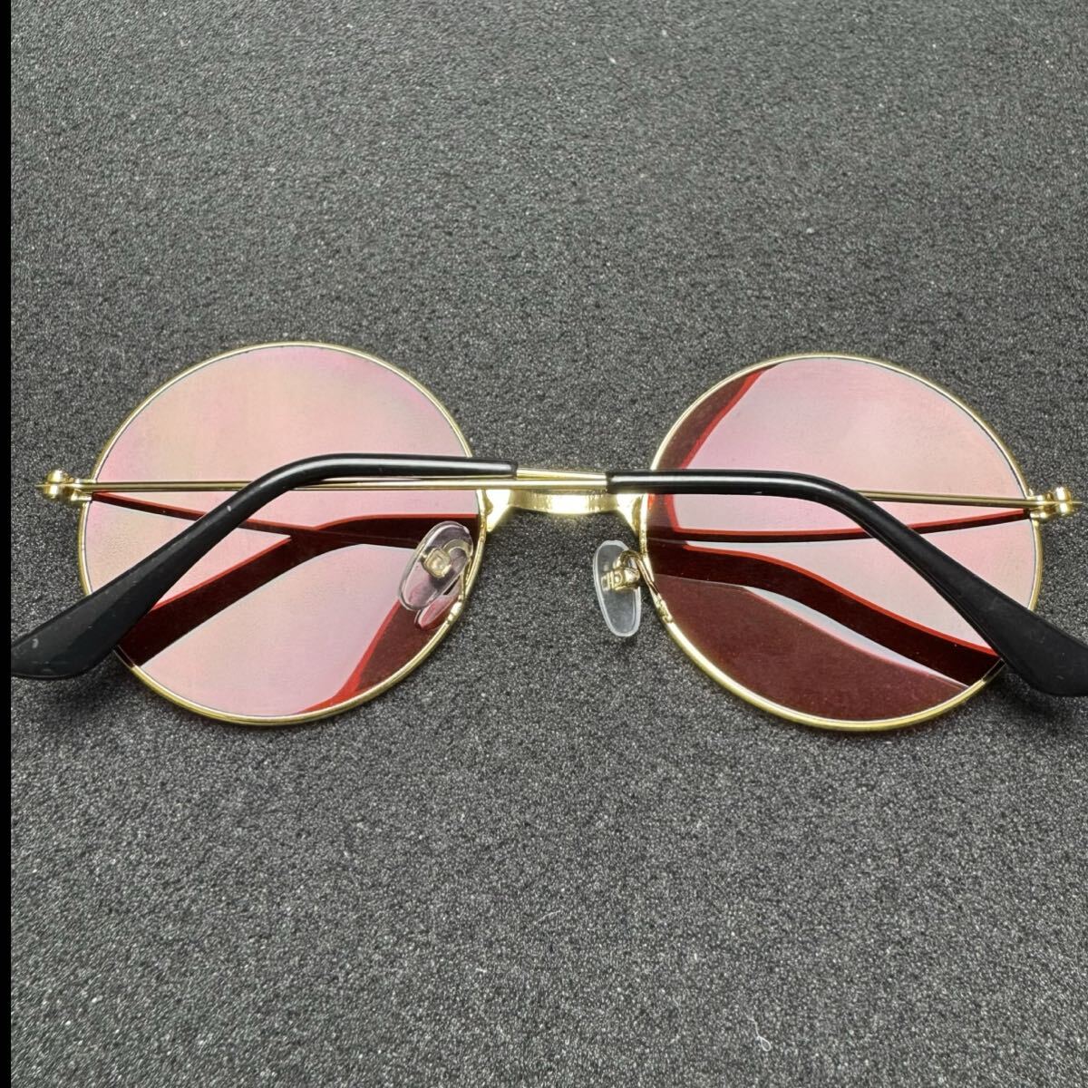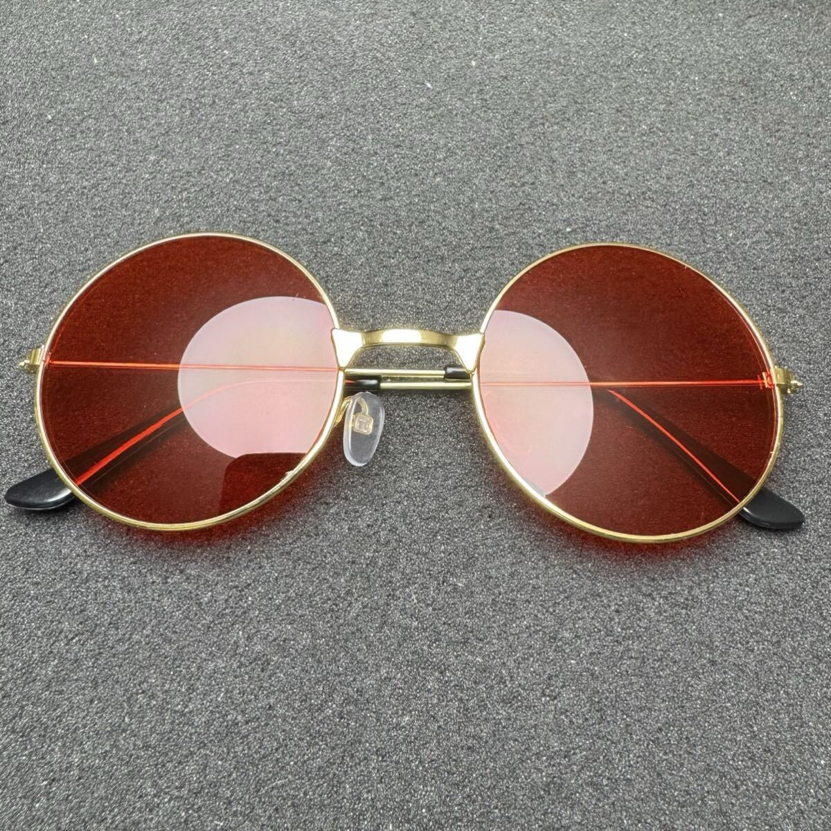 新品 赤×金 丸メガネ サングラス UVカット カラーレンズ メンズ レディース