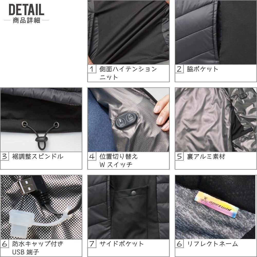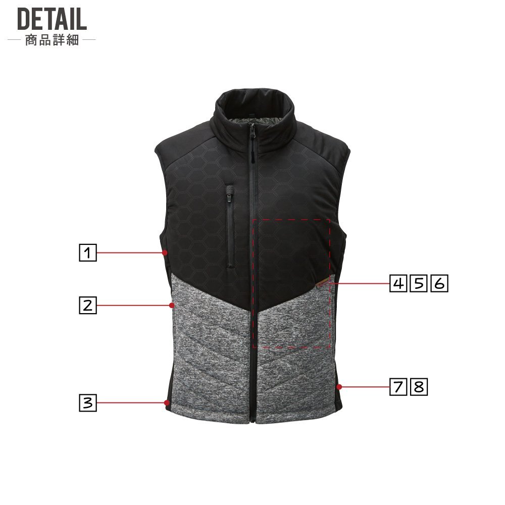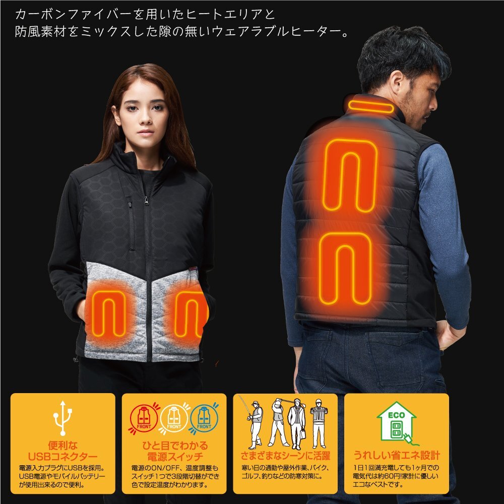 防風素材をミックスした隙の無いウェアラブルヒーター