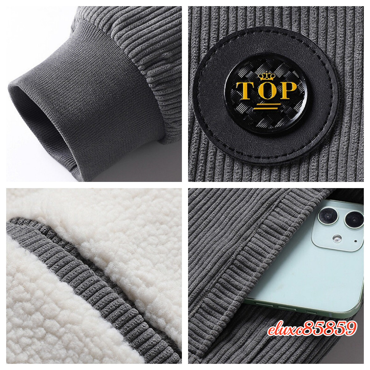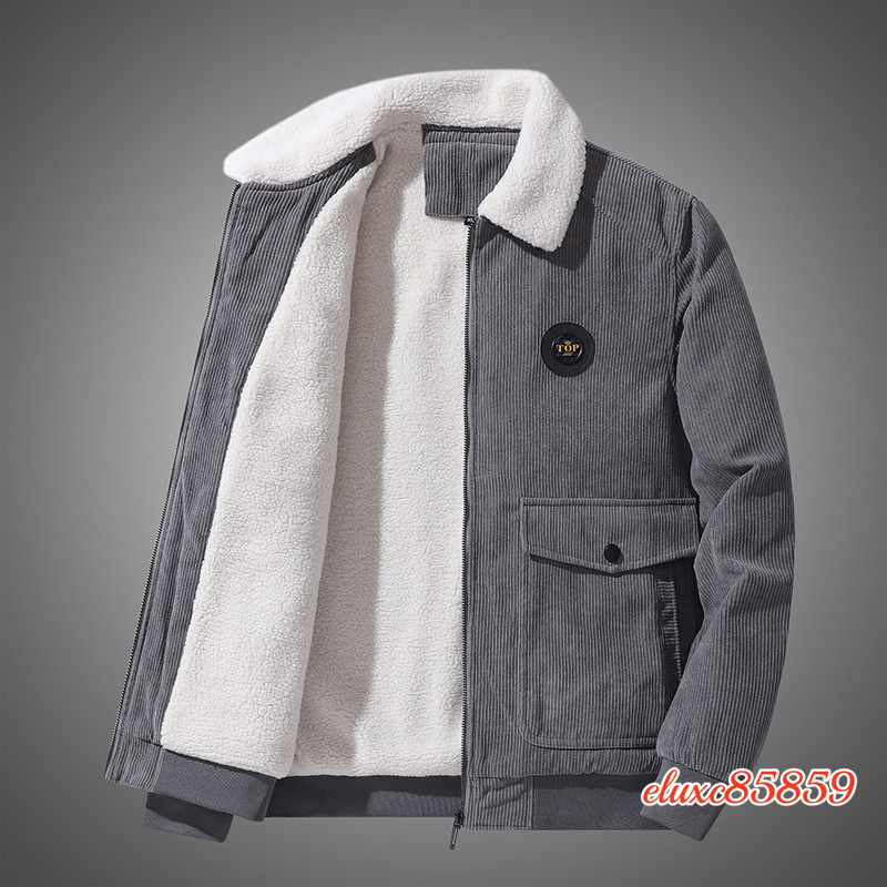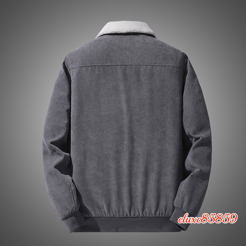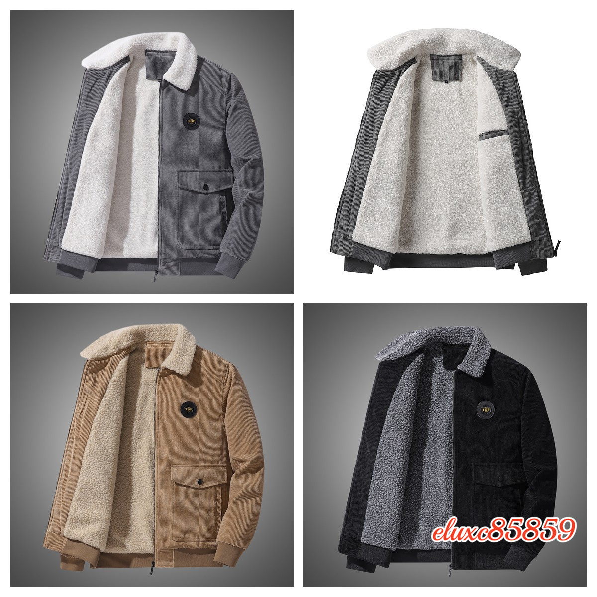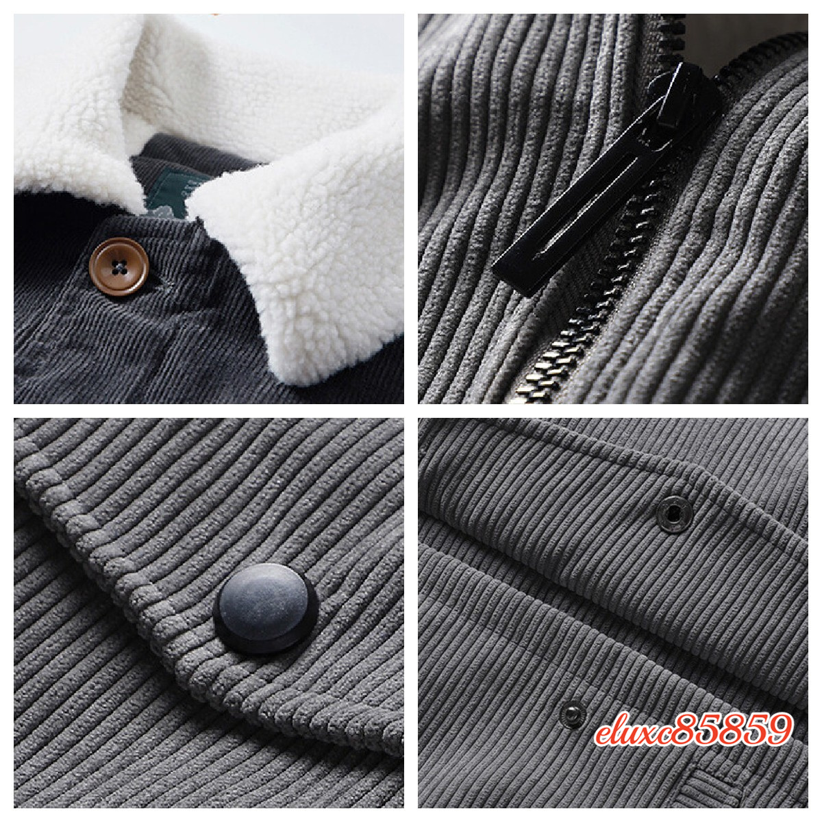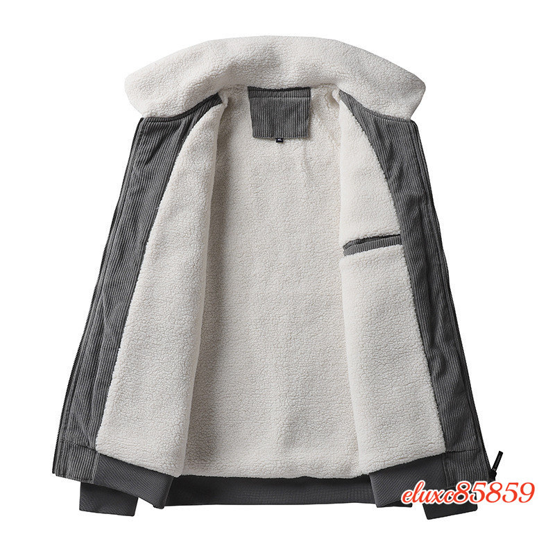 メンズ コール天 シープスキン ジャケット 厚手 裏毛 防寒 ワークウェア風 秋冬 ジャンパー ブルゾン アウター グレー XL~5XL選択
