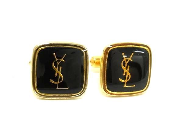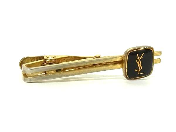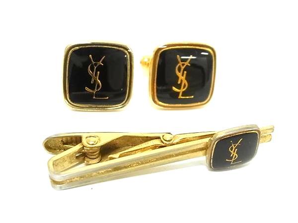 YVESSAINTLAURENT イヴサンローラン カフス カフスリンクス ネクタイピン タイピン 2点セット ブラック系×ゴールド系 DL0406