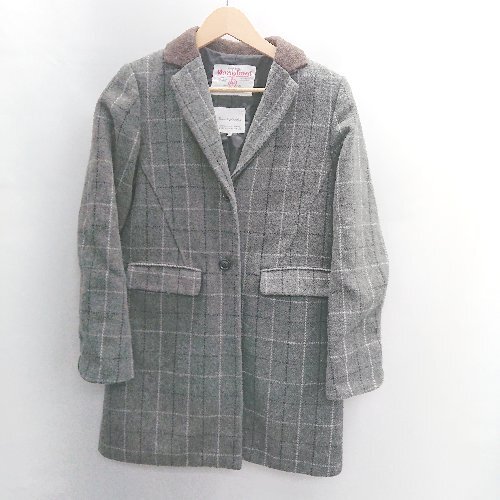 ◇ ⊇ HARRIS TWEED ハリスツイード チェック柄 長袖 コート サイズM グレー レディース E