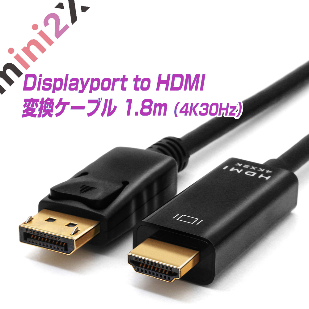 ・DisplayPort対応のノートパソコン、デスクトップPCをHDMI入力ポートをもつ テレビ、モニター、プロジェクタ に接続して、PCの画像や映像を楽しむことができます。 ・最大解像度:3840×2160(30Hz)の4K解像度対応だから、大画面でも鮮やかにはっきり再現が可能です。 ・オーディオ変換(出力)やプラグアンドプレイをサポート。 ※オーディオ変換(音声出力)に際してはご利用のOSにて「サウンド設定→音声出力先」の設定にて音声出力先機器をご選択頂く必要がございます。 ※ご利用されているグラフィックボードや液晶モニターによってはHDMI自動検出の設定が必要になります。 詳しくはお手持ちの製品に付属しているマニュアルをご参照下さい。 □製品仕様 HDCP対応/最大出力解像度:3840x2160(4K 30Hz)、1920x1080(1080p 60Hz)/ケーブル長さ:約1.8m(アダプタ部含む)/ケーブル色:ブラック/ケーブル径:約5.5mm/重量:約80g/アダプタ部(mm):DP部:幅21x縦47x厚12/HDMI部:幅20x縦54x厚10 サビに強く、信号伝送の安定度に優れる金メッキプラグを採用しています。 □対応機器 <映像出力側>DisplayPort (ディスプレイポート)端子搭載の ノートPC 、デスクトップ パソコン <映像入力側>HDMI端子搭載のモニター、プロジェクタ、テレビ等 ※PC側のHDMI出力からモニター側のDisplayPortへの変換はできません。 |