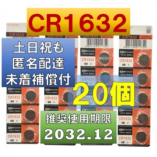 追跡番号 土日祝日配達 CR1632 リチウムボタン電池 20個
