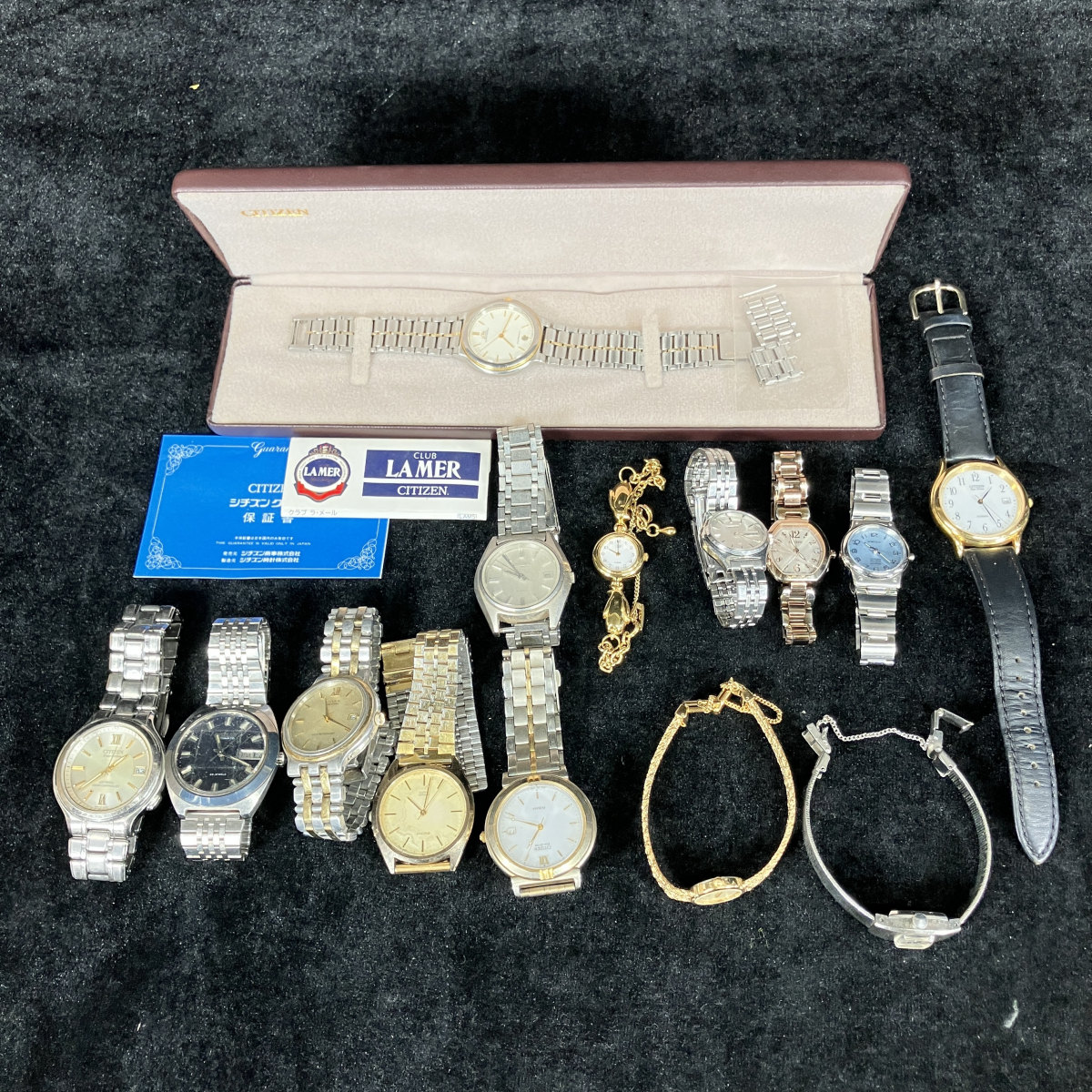 | 商品説明 | ★最後までお読みいただき、ご理解の上でのご入札をよろしくお願いいたします。 【FE005】 ★CITIZENまとめ CLUB LA MER/ Eco-Drive 等 シチズン 14点 まとめ売り 腕時計 コレクション 【商品状態】 ひとつずつ検品・梱包は行っておりません。 まとめ品の中にジャンク品を含む可能性があります、ご了承ください。 多数商品がある場合、傷や汚れを写真に載せきれない可能性もございます。 あらかじめご理解・ご了承の上入札をお願いいたします。 また、細かくクリーニングしている訳ではありませんので 状態を極度に気にされる方、神経質な方は入札をお控えください。 ■写真に写るもののみの販売となります。 写真にないものは付属いたしません。 画像をご確認の上、商品の状態に納得して頂いた方のみ入札をお願いいたします。 【取引ナビの対応日時】 ■平日9:00-17:00となります。※土日祝日は休業 【発送方法】 発送は佐川急便よりお送りいたします。 原則ご入金後、発送まで3日~7日お時間を頂いております。落札商品の量によって発送までのお時間が前後してしまう可能性があります。商品をお急ぎの方はご注意ください。 ※発送元地域が異なる商品の同梱はできません。 また土日祝日はヤフオクの取引全般をお休みしておりますので発送/連絡はできません。いつ頃発送するのか等の催促はおやめください。 ※沖縄・離島の方は【中継料】が発生し送料が高額になります為、佐川着払いとなります。 ※中継料が発生した場合、追加で中継料分の不足送料を請求させて頂きます。必ずご自身のお住まいをご確認頂いてから入金をお願い致します。 【直接引き取り】 引き取り場所は東京都八王子市になります。 詳しいご案内場所は落札後、取引ナビにてご連絡いたします。 受付時間:平日10-17時 (12-13時を除く) 商品の保管期間は支払い後、1週間(7日間)とさせていただきます。 直接引き取りをご希望される場合は、以下の通りお手続きをお願いいたします。 お取引の際は、「単品取引」を選択してください。 送料の選択では、必ず「0円(無料)」をご指定ください。 【重要】 システムの都合上、複数ご購入の場合でも「まとめて取引」は選択されないようお願い申し上げます。 ご理解とご協力のほど、よろしくお願いいたします。 ■手順 ① 取引情報の入力 ② yahoo!かんたん決済で支払うをクリック ③ 配送方法を直接引き取り0円を選択し決済を行ってください。 ④ 取引メッセージに 直接引き取り希望と、希望日、希望時間帯をお知らせください。 後程、ご案内の通知をいたします。 取り置き1週間となります、取引ナビにてご連絡お願いします。 【注意事項】 ■発送連絡と同時に評価も入れております。評価不要の方はご落札時にメッセージでお知らせください。 ■商品到着後、破損があった場合は配送業者へ一度ご連絡をお願い致します。 ■発送方法の変更はお受けできません、また送料に納得がいかないままの入札はご遠慮ください。 ■商品到着後7日以上経ってからの返品・返金は対応出来ません。品物が到着次第すぐに商品の状態をご確認ください。 ★他にも沢山の商品を出品しております。 ご興味のある方は、他の商品も是非ご覧下さい。