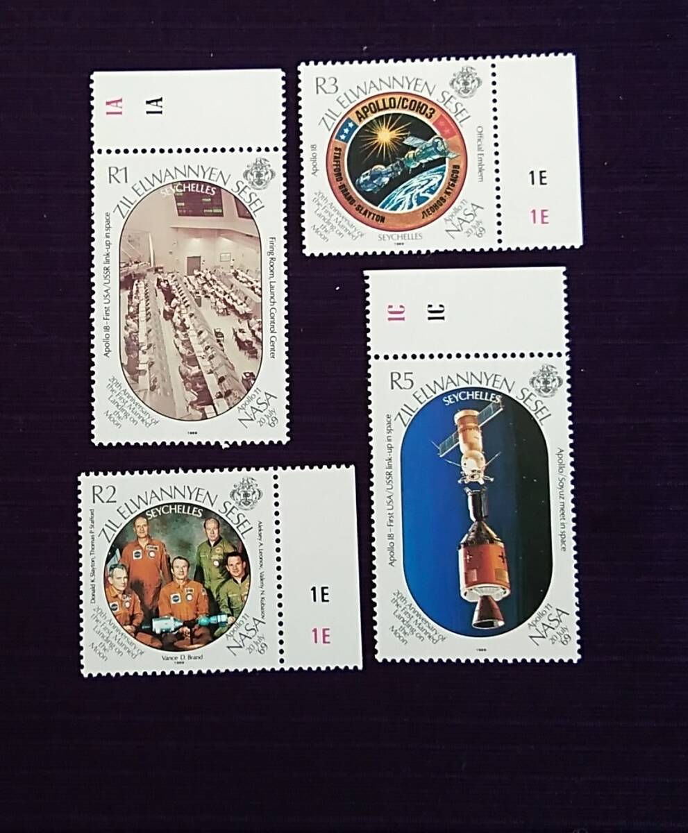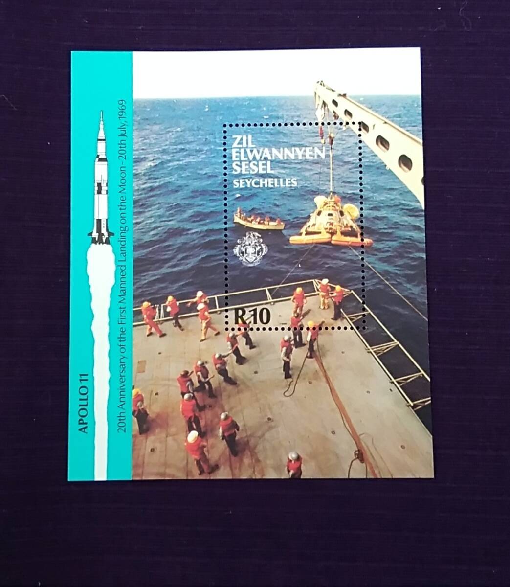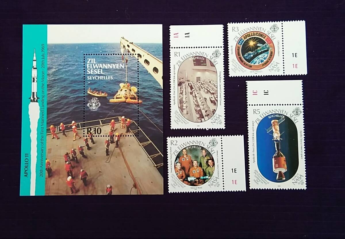 外国未使用切手4種と小型シート 宇宙関連 セーシェル アポロ11号人類初月面着陸20周年です。