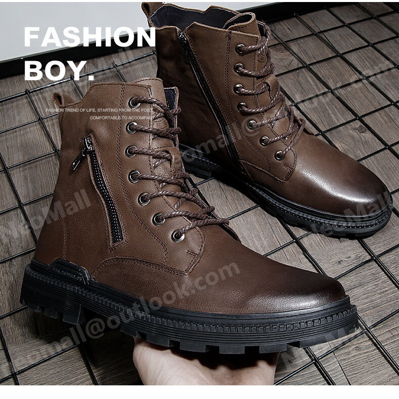 サイドジッパー付 牛本革 メンズ シュートブーツ ブラウン サイズ 25.5cm カジュアル 屈曲性 通勤 軽量 インポート品【n031】