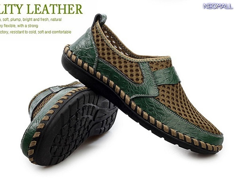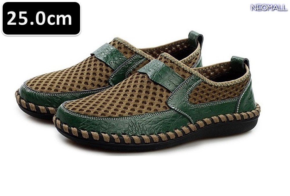 大人気☆ ローファー ドライビングシューズ【405】グリーン 25.0cm メッシュ 夏 通気 軽量 スニーカー スリッポン 紳士靴 カジュアル