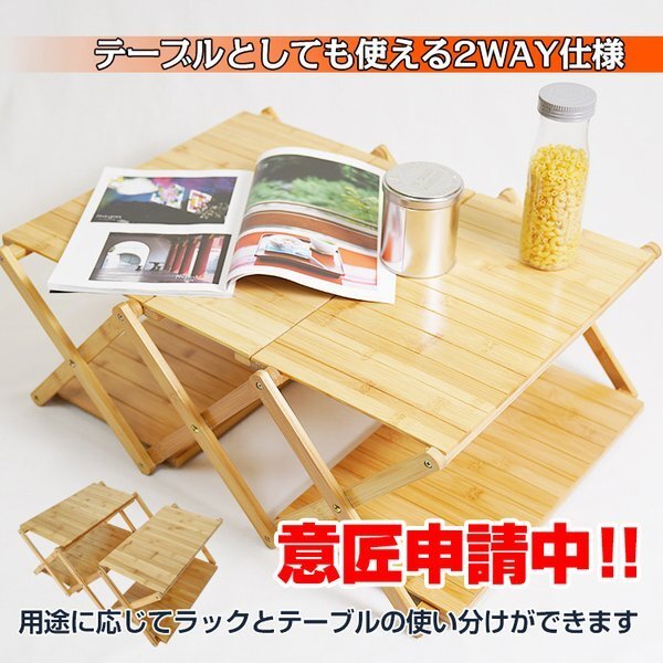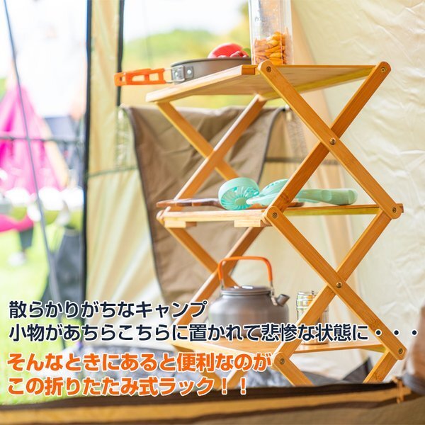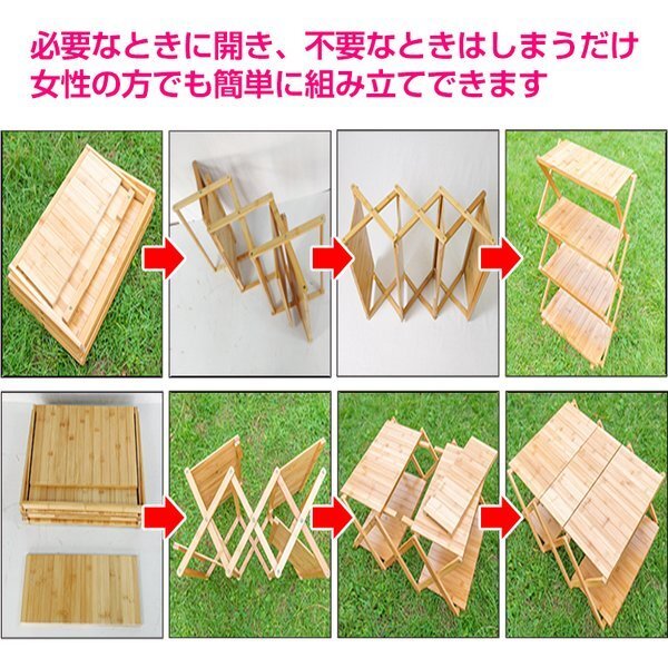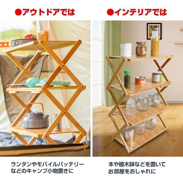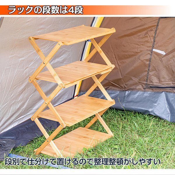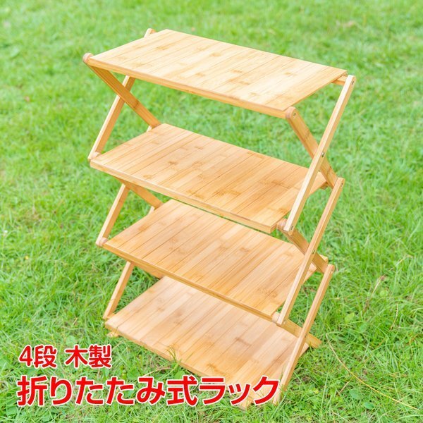 1円 棚 ラック テーブル 折りたたみ 4段 アウトドア キャンプ 収納 竹製 バンブーラック 小物置 フラワー ディスプレイ ガーデン ad179-1