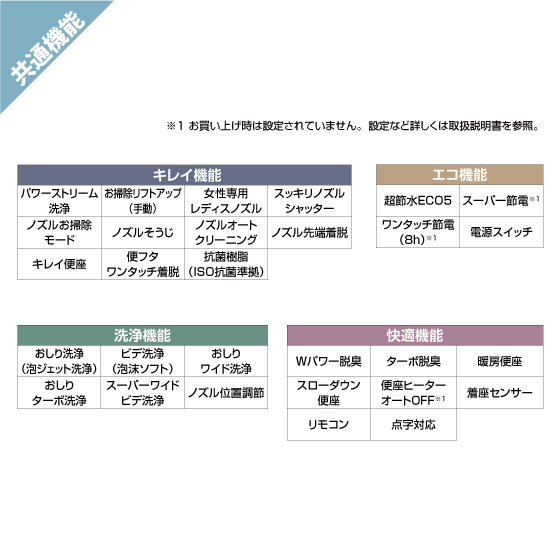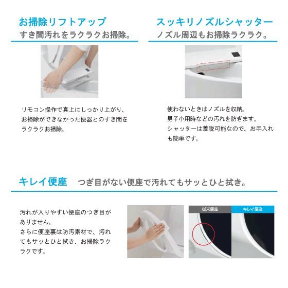 ・ シャワートイレ基本機能搭載(暖房便座・脱臭機能・他...)