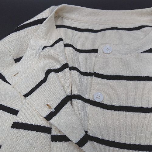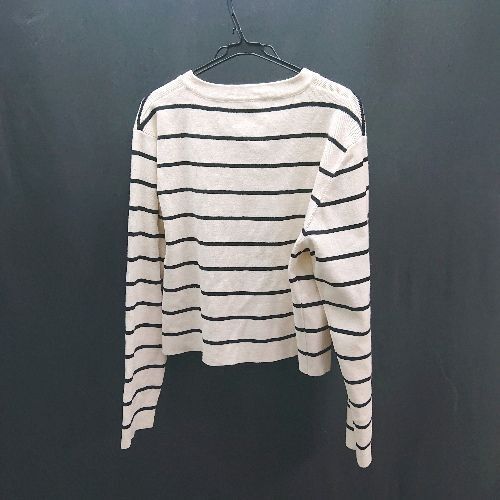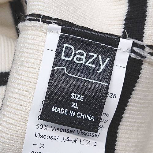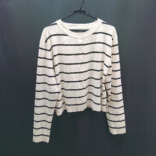 ◇ DAZY?デイジー ボーダー柄 フロントボタン おしゃれ 長袖 ニット カーディガン サイズXL アイボリー系 レディース E