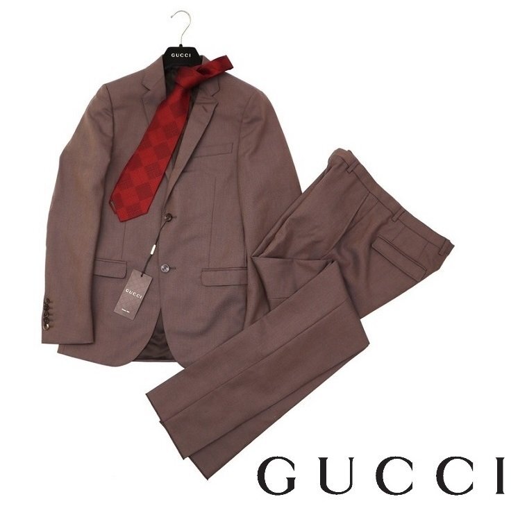 65万新品◆54L=XXL◆GUCCI グッチ モヘアブレンドウールスーツ 茶ブラウン