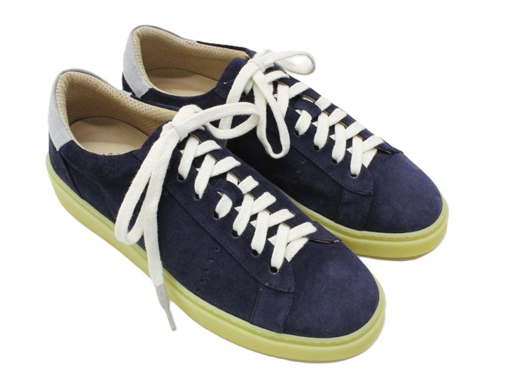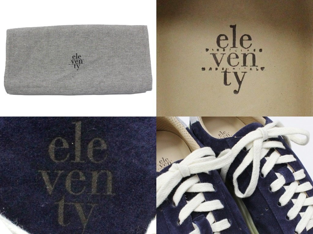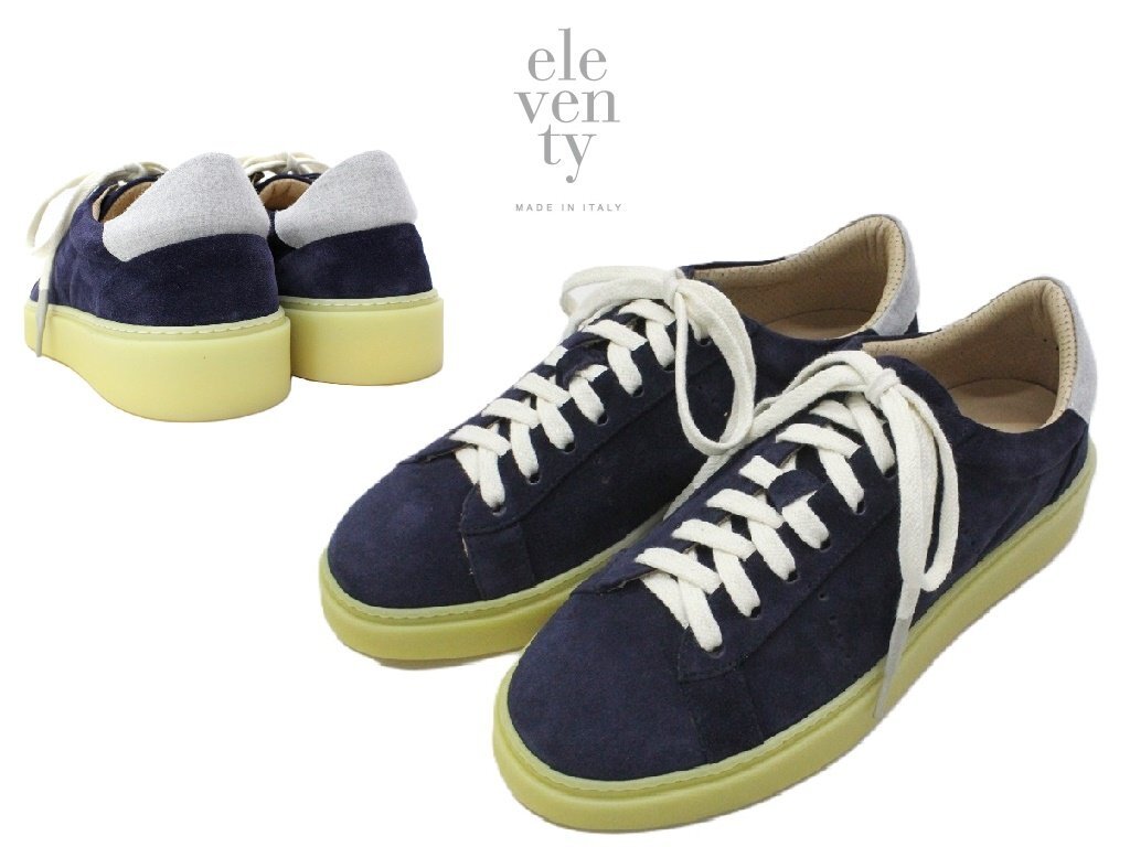 13万新品◆42=27cm◆eleventyイレブンティ スエード×ファブリックローカットスニーカーネイビー紺