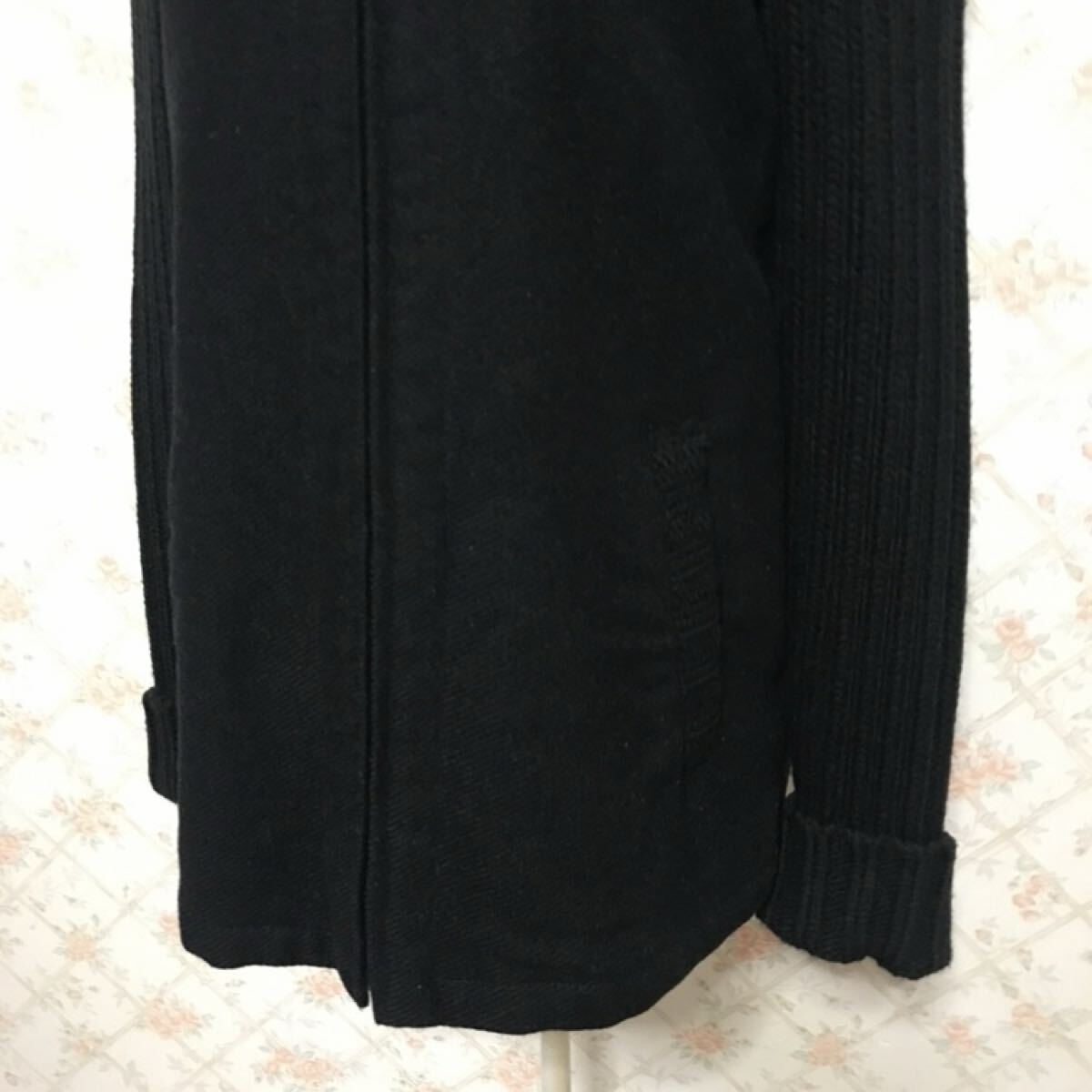 襟.ポケット口.袖部分はリブニットとなります。