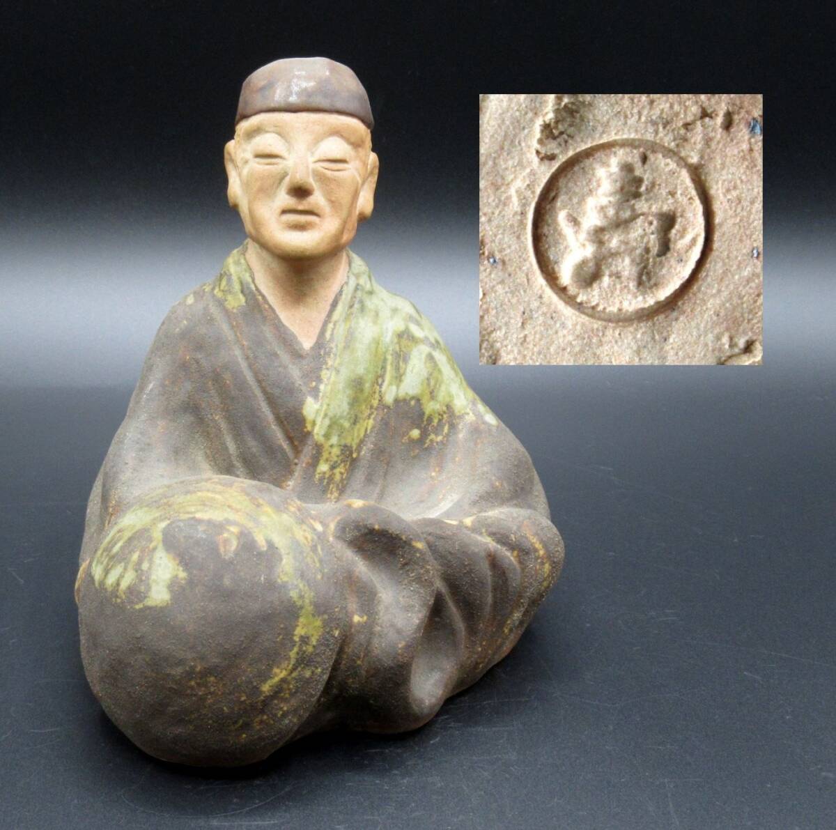 在銘『 松尾芭蕉像(16.3cm×15cm×14cm)陶器製 』*Matsuo Basho. 松尾芭蕉座像