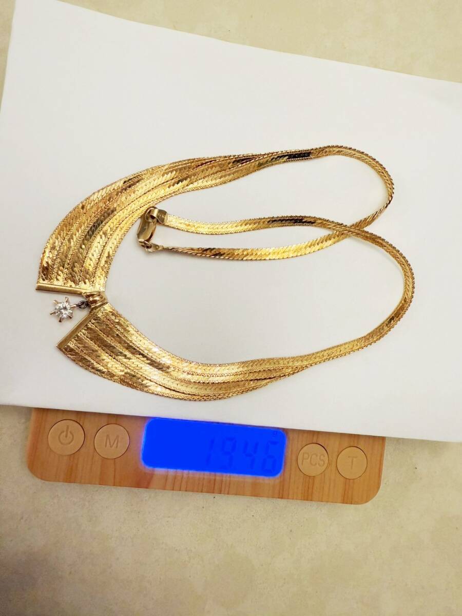 | 商品名 | H345★VIERI ITALY【750刻印】ネックレス 19.46g K18相当 ゴールド イタリア 金★0.350カラット ダイヤ★ゴージャス★送料700円~ | ||||