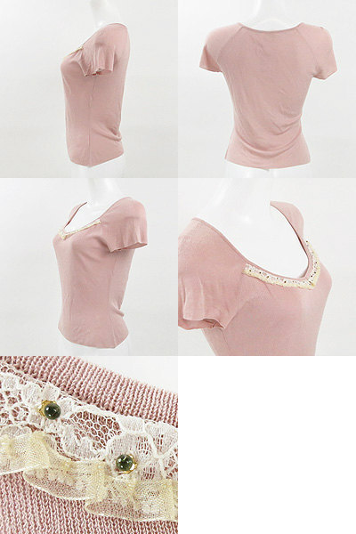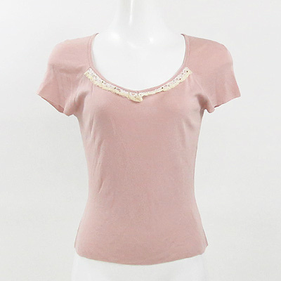 | ハロッズの大人フェミニンな半袖カットソー。 胸元のレースにはビーズも施されていて、 さらっとした薄手生地に細かなデザインが魅力な1枚です♪ 落ち着いたピンクのお色目ですので、ピンクでも子供っぽくならず、 大人な雰囲気でお召し頂けますよ☆ スカートにもパンツにも合わせやすいのが嬉しいポイントです☆ 袖口によれが見られます。 着丈約52cm袖丈約19cm肩幅約35cmバスト約70cm 【サイズ】:(-)9号くらい 【素 材】:(レーヨン 60% コットン 40%) 【 色 】:(ピンク) 【程 度】:(AB) 20110920-027 217 011 | ||||
