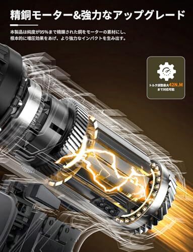 【42Nmの強力トルク&25段階調整】最大トルク42Nmと25段階のトルク調整機能を備え、回転速度は2段階(0~350RPM / 0~1650RPM)の切り替えが可能で、トリガーの押し込み具合による無段階微調整も対応しており、木材、金属、プラスチックなど多様な素材に合わせてトルクと速度を最適化し、素材を傷つけず効率的で正確な作業を実現します。