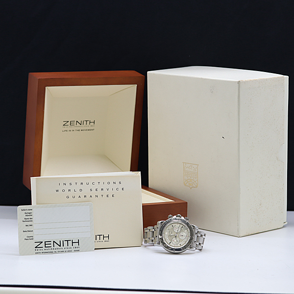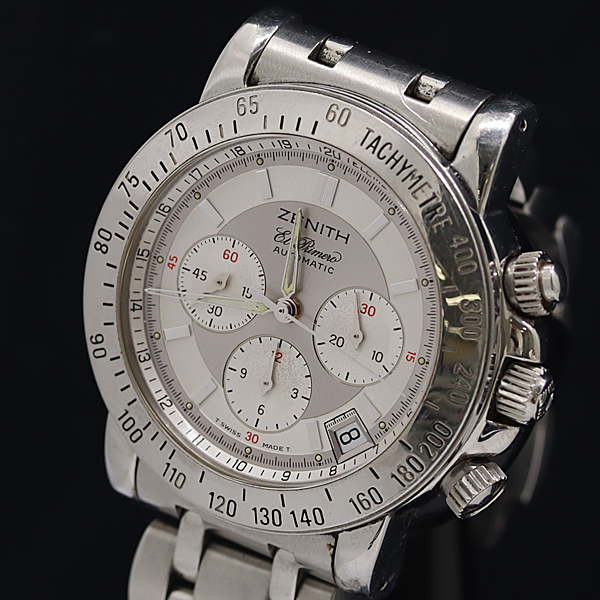 1円 保/箱付 ゼニス エルプリメロ クロノグラフ 01/02.0461.400 AT/自動巻 シルバー文字盤 メンズ腕時計 5165710 12BGT SMZ