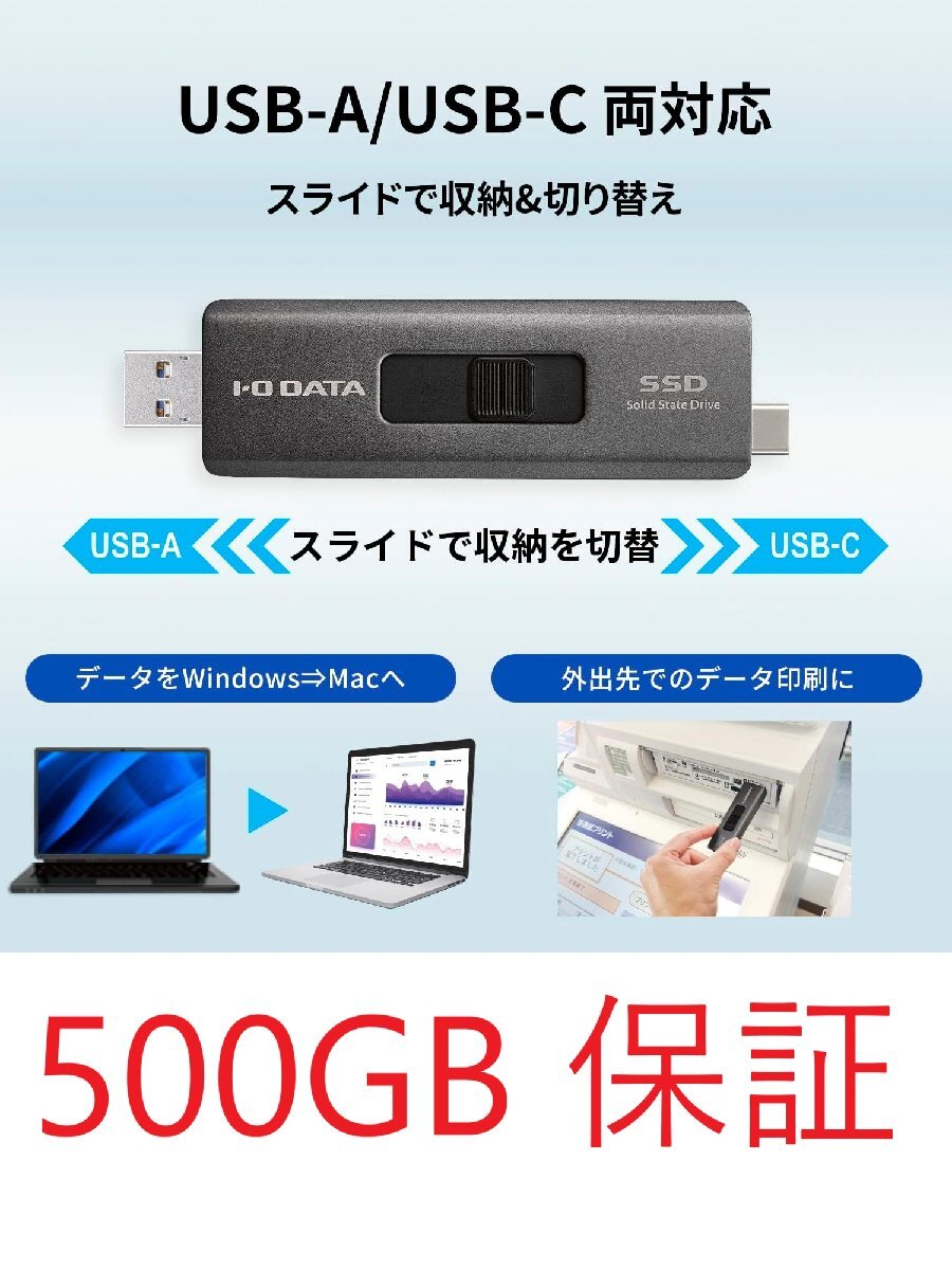 アイ・オー・データ IODATA ポータブルスティックSSD 500GB USB-A&USB-C iPhone/iPad/Windows/Mac/PS5 USB 3.2 Gen 2 SSPE-USC500/E 保証有