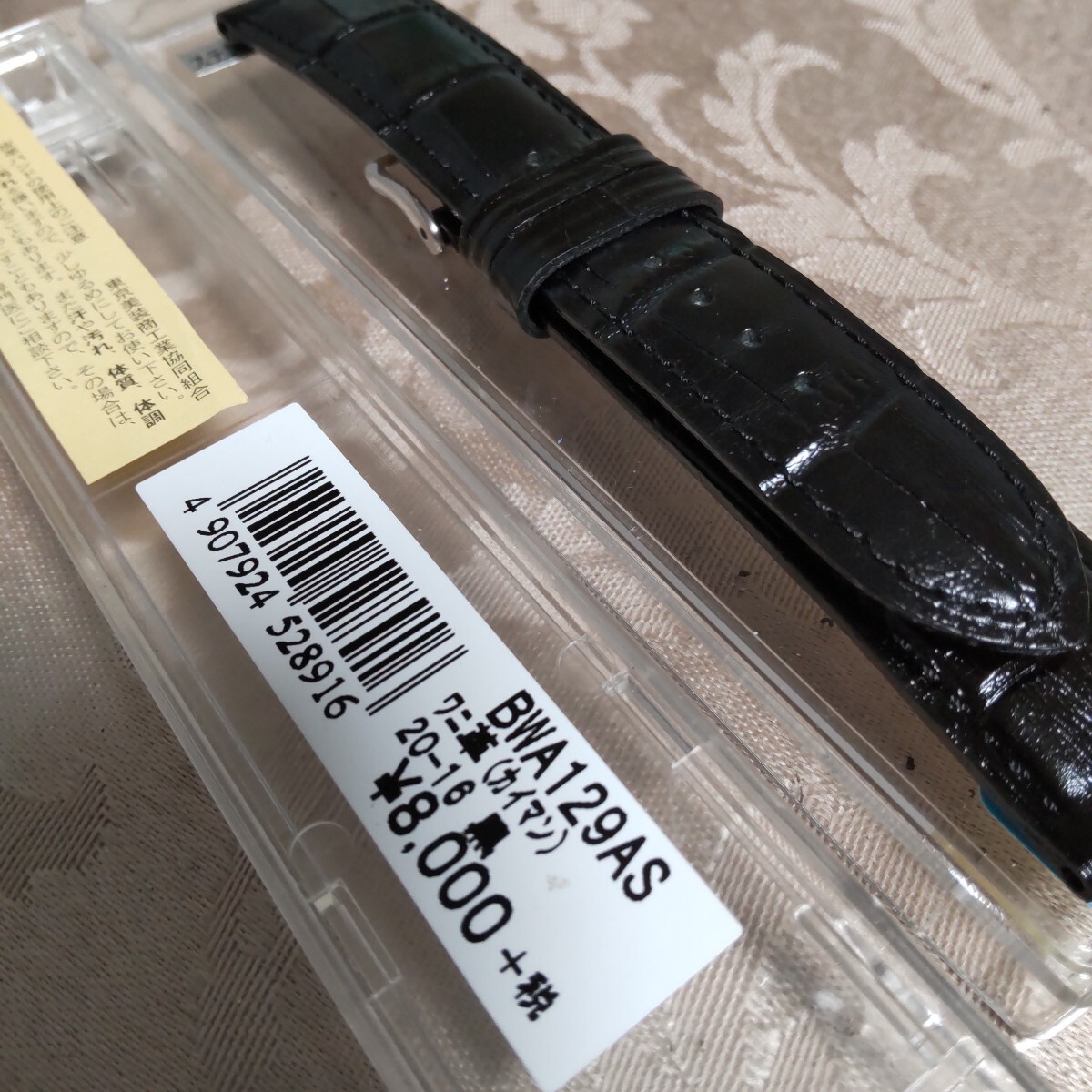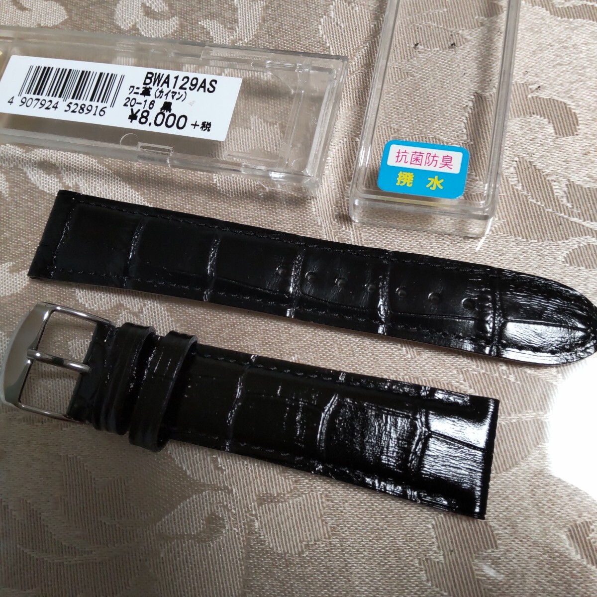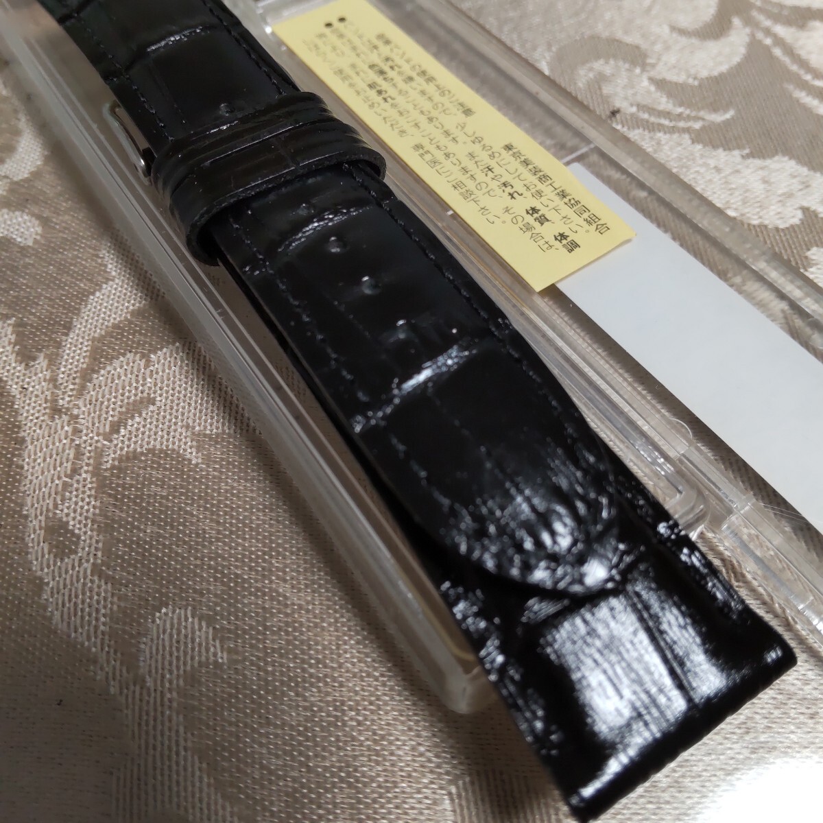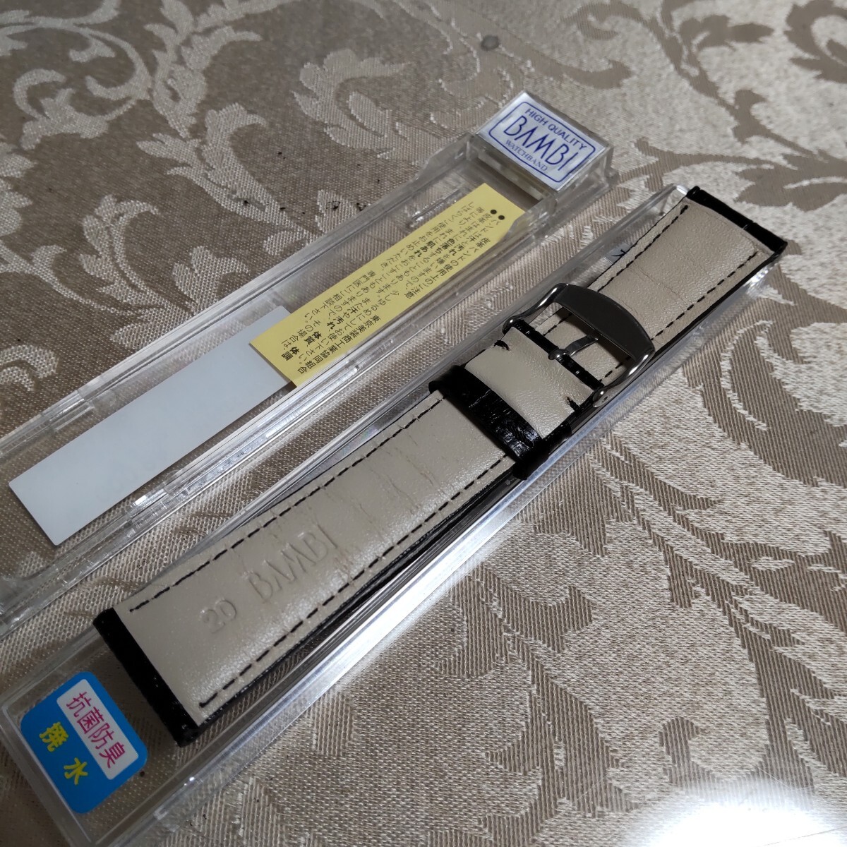 時計ベルトの専用メーカーBAMBIの本ワニ革(カイマン鰐)の黒ベルト、定価8000円のもの。20mm。