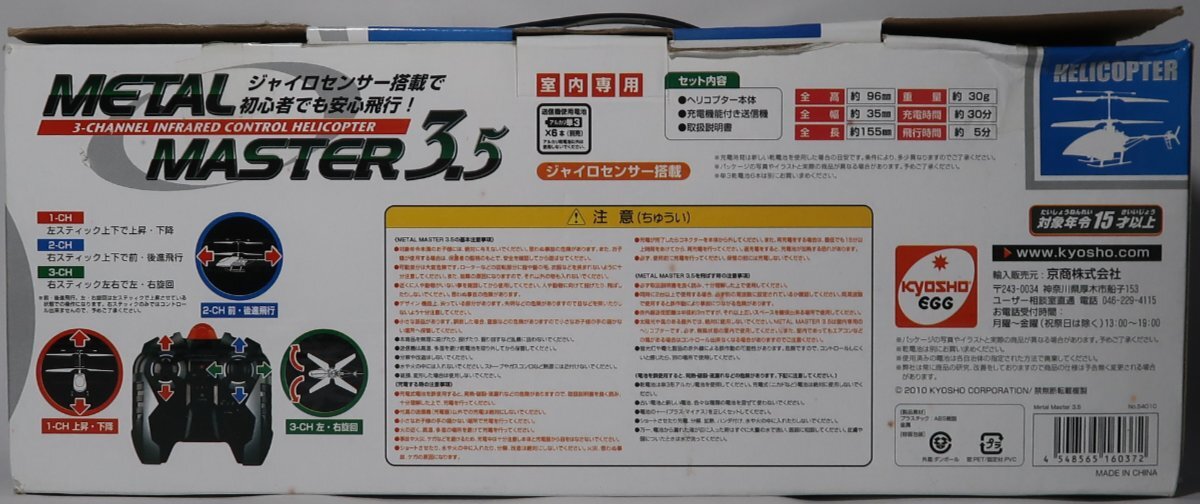 出品は画像の物が全てです。電池はご自分でご用意ください。使用品ですので擦り傷や汚れがあります。右スティックの先が折れてなくなっています。この状態で電池をつけてテストしました。プロポの通電はできました。ヘリへの充電もできました。充電完了後にテストを5、6分しましたが、すぐにバッテリーが切れることはなかったです。バッテリーは消耗品ですのでいかなる状態であったとしてもノークーレームです。通電及び操作もできるのですが、左側のスティックの接触が悪いです。反応するときとしない時があります。接触不良のような感じです。また実際に空への飛行はさせていません。どこへ飛んでいくのかわからないですし、操作も不慣れなので、テスト中はヘリコプターの下を手で持って、もう片方の手でプロポを操作しました。メインプロペラ及びテイルプロペラは勢いよく回りました。ただきちんと思い通りに飛ぶのかわかりません。分かることは以上です。このような状態ですのでお取引後はいかなる理由がありましても返品はできませんし、クレームはお受けできません。