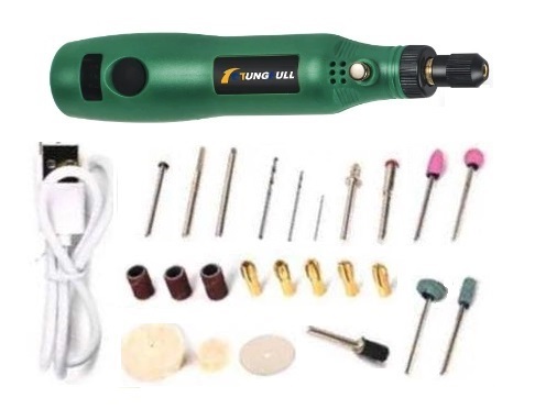★おまけ付きミニルーター グリーン USB充電式 24+5個ビット付き 電動工具 安全機能あります