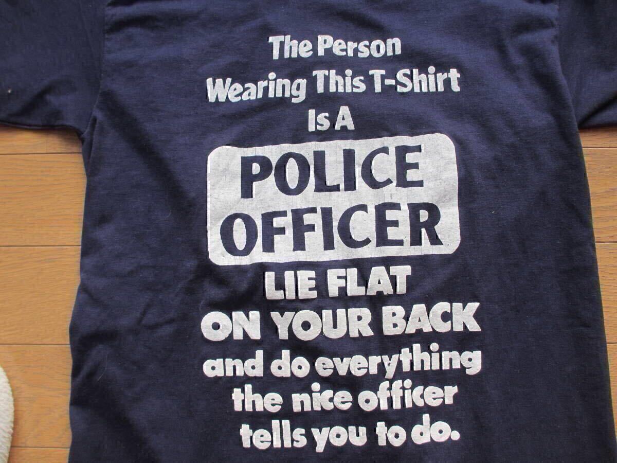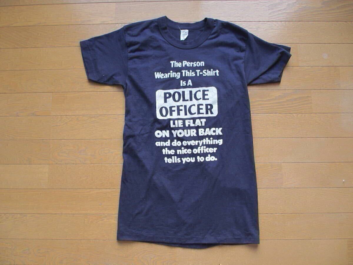極美品 80S 80年代 ヴィンテージ ビンテージ TEE SWING プリント 紺 白 警察 警官 POLICE アメリカ製 囚人 刑務所 古着 アメカジ プリズナ