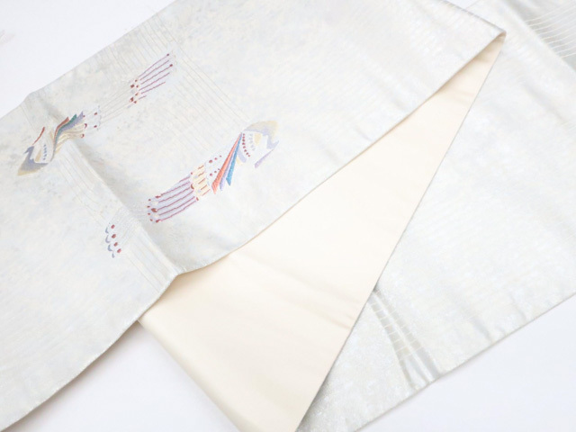 《古美術京松》袋帯 お太鼓柄 孔雀 金糸 正絹 kyo7b11-387