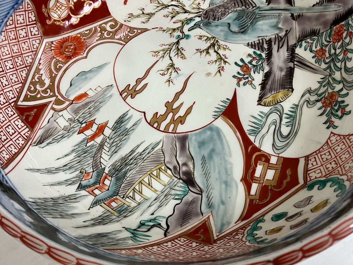 | ◆【 明治~大正 古伊万里 色絵金襴 鉢・直径 約25,5cm直径 約18,5cm2枚 ◆骨董 ◆骨董美術◆ [状態] 商品説明 ・明治~大正 にかけて作られたとみられる色絵金襴 鉢です 鉢に花鳥の文様綺麗な鉢です 外観の状態 ・古い物で 他多少の汚れキズ 、があるかもしれませんが綺麗です 画像を見て判断してください。 サイズ ・直径 約24,5cm 高さ 約8cm 直径 約18,5cm高さ 約5,5cm 存在感のある鉢です 付属品 ・画像のものが全てになります 当社のオークションは返品・交換・キャンセル等は一切お断りさせて頂いております。充分ご検討の上ご入札下さいませ。 ★出品中の商品は、店頭でも販売しております。 店頭で売れた場合には期日に関わらずオークションを早期終了させていだきます (ご入札があった商品は直ちに店頭からお下げしておりますが、稀に入れ違いで売れてしまう場合もございます。ご了承くださいませ) | |