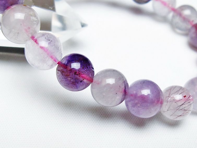 | ■商品名: セイクリッドセブンブレスレット ■商品ID: T141-8203 ■商品重量:約 22.9g ■商品サイズ:内周約:154mm(±5mm)粒直径約:9mm(±0.5mm)~10mm(±0.5mm) 【セイクリッドセブン】 セイクリッドセブンは水晶・アメジスト・カコクセナイト・ゲーサイト・スモーキークォーツ・ルチル・レビドクロサイトの7つの鉱物を内包した天然石です。 また、セイクリッドセブンと同じ成分のものでブラジルのエスピリトサント鉱山から産出されたものはスーパーセブンと呼ばれ、セイクリッドセブンとは区別されます。 セイクリッドセブンは複数の鉱石のエネルギーが調和しており持つ人を選ばないといわれています。 7つの鉱物のパワーを受け継いでいるので総合的に運気を高めたい、全ての石の効果を同時に得たいという方には打って付けの石といえるでしょう。 また、内なるパワーを引き出し潜在能力を開花させる効果も期待できますので、自分自身の可能性を広げたいと考えている方にもおすすめです。 加工されたもので7つの鉱石を全て内包したものは非常に稀ですが、原石の状態で7つの鉱物が入っていれば加工後の状態であってもすべての鉱物のパワーが秘められているといわれています。 ⇒ セイクリッドセブンをもっと詳しく ◆ワンポイント情報 セイクリッドセブンは強い自浄作用を持つとされています。頻繁に浄化する必要はありませんが、石が疲れているように感じた時はクラスターや流水などで浄化してあげるようにしましょう。 内包しているスモーキークォーツやアメジストは紫外線によって退色する恐れがあるため、日光浴での浄化はおすすめしません。 |
