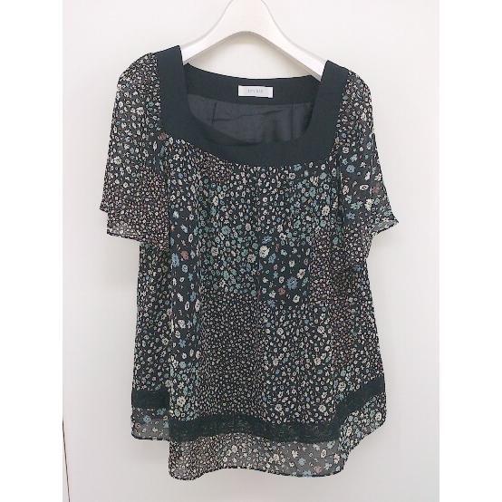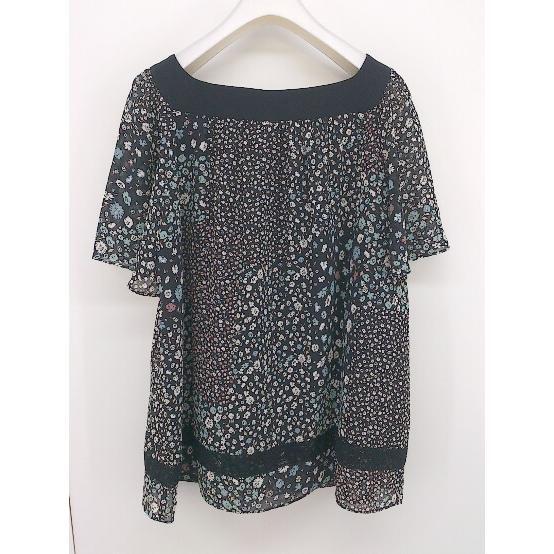 ◇ any SiS エニィスィス 花柄 半袖 ブラウス カットソー サイズ2 ブラック ホワイト マルチ レディース