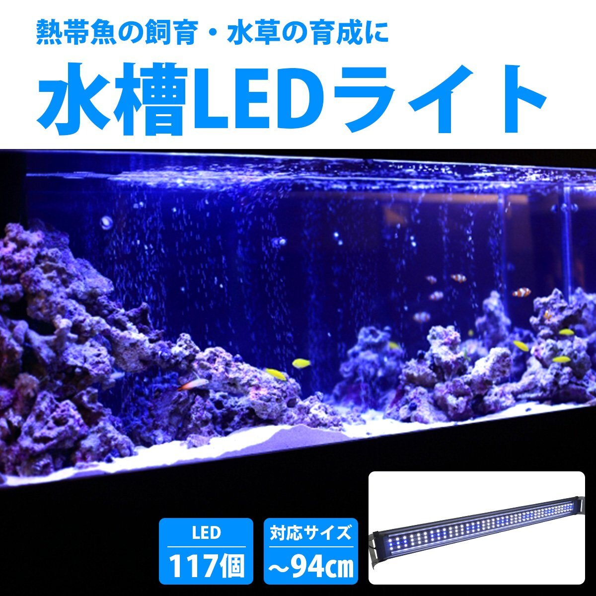 【送料無料】90cm-95cm 水槽用 照明 LED ライト ブルー×ホワイト 青/白 シルバー枠 アクアリウム ライト LED 照明 水槽 サンゴ 熱帯魚