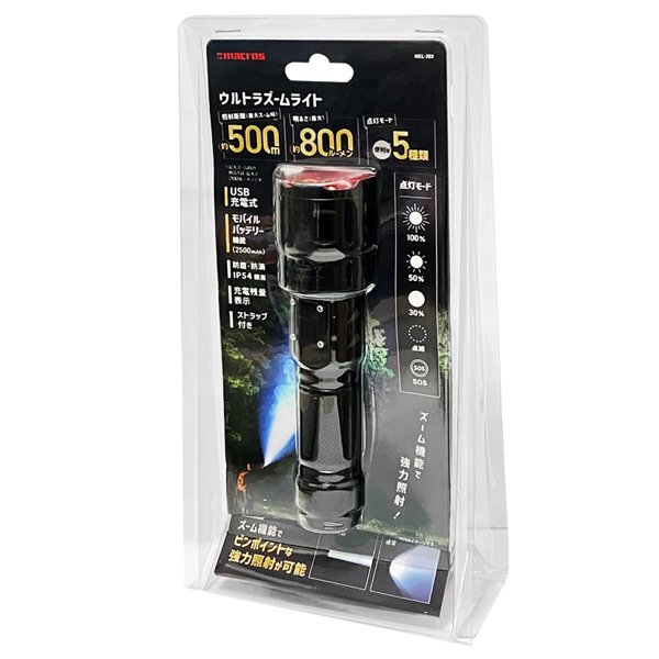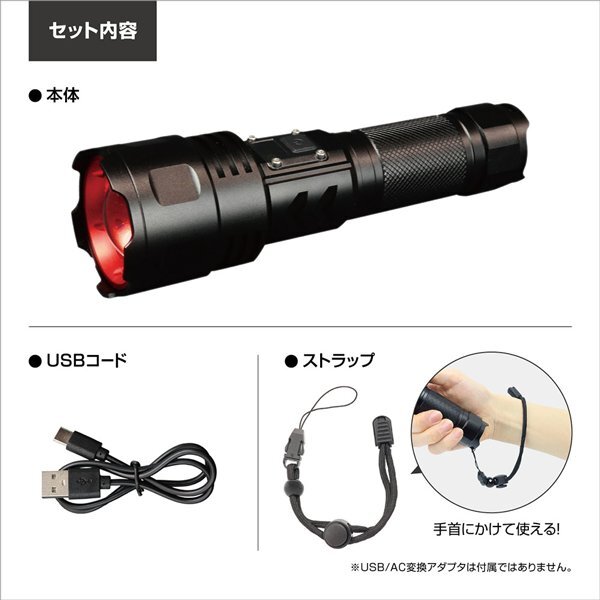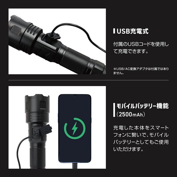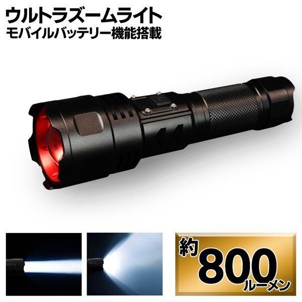 800ルーメン!500m先照射 最強 ハンディライト 充電式 モバイル充電搭載 ズーム機能 LED 防災 アウトドア 送料無料- 60N◇ ウルトラズーム