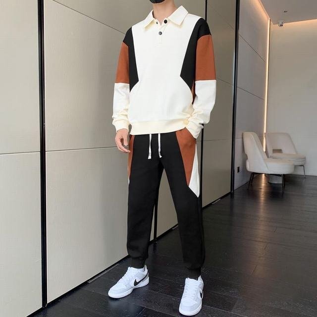 セットアップ メンズ 上下セット スウェット ルームウェア ポロシャツ スポーツウェア 運動着 秋 冬 カジュアル 新作 ベージュ 2XL